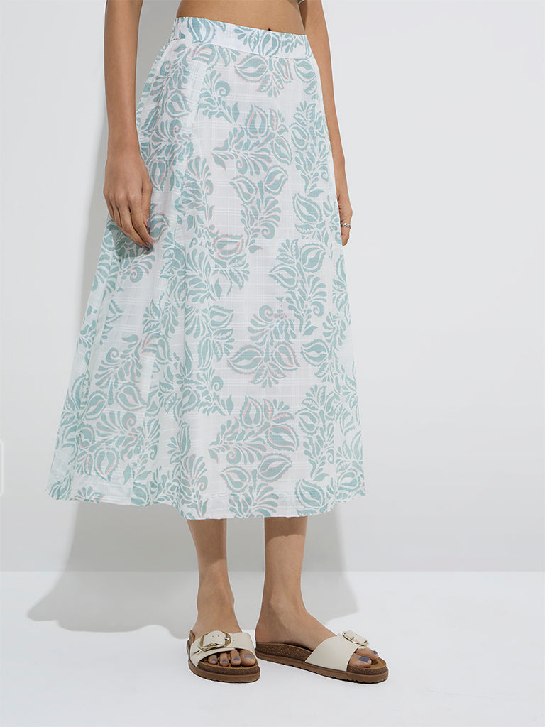 Bombay Paisley Sage Botanical Design Cotton Skirt