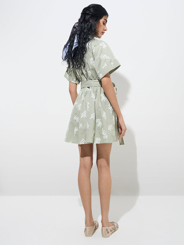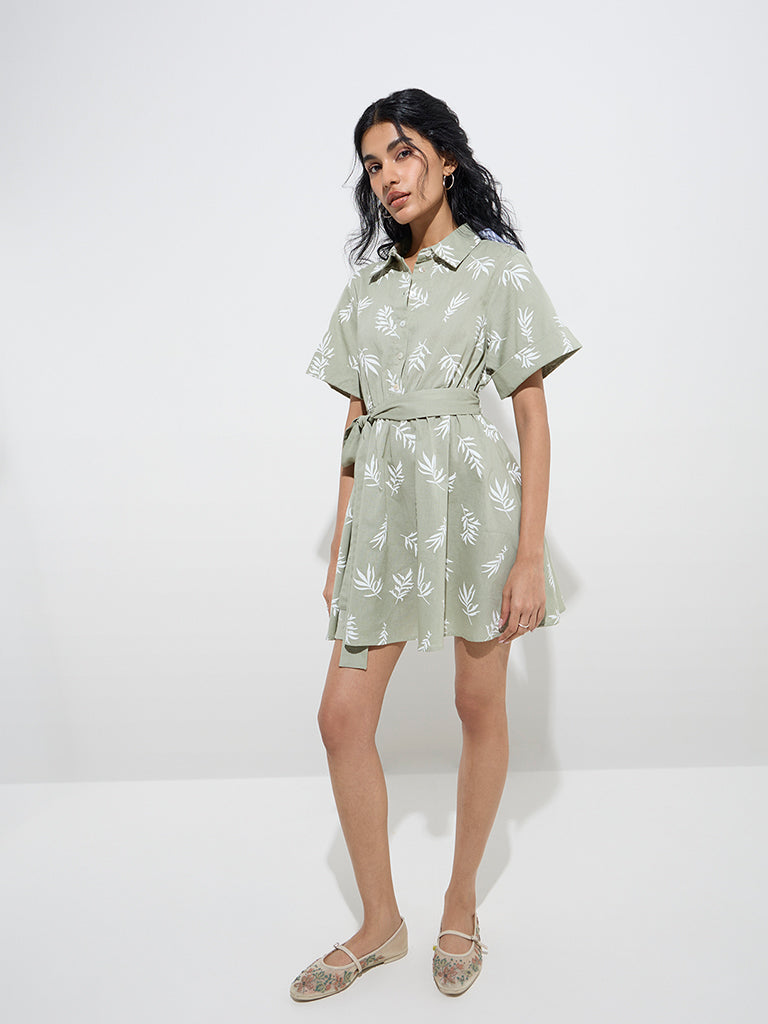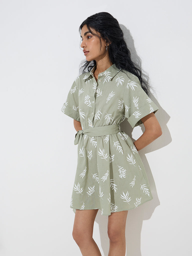 Bombay Paisley Sage Cotton-Blend Shirt Dress with Belt