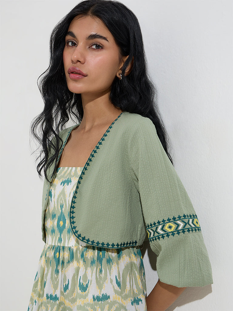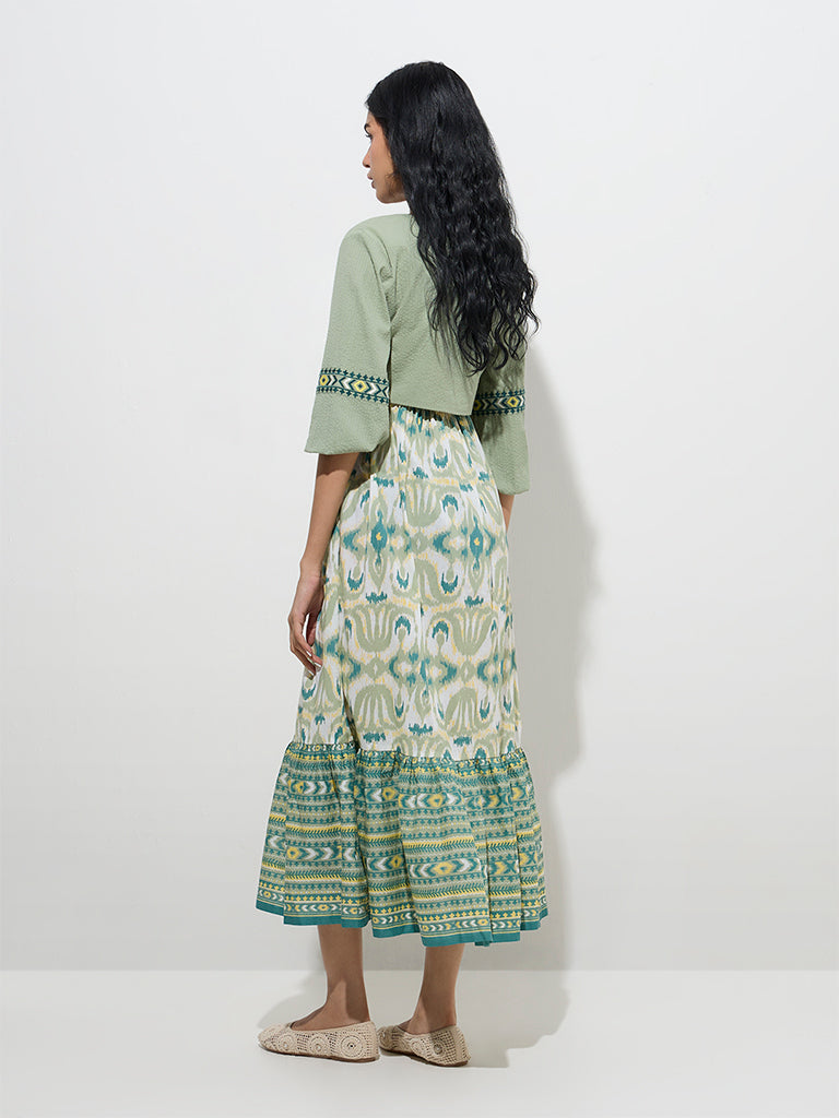 Bombay Paisley Sage Ikat Cotton Tiered Dress with Jacket