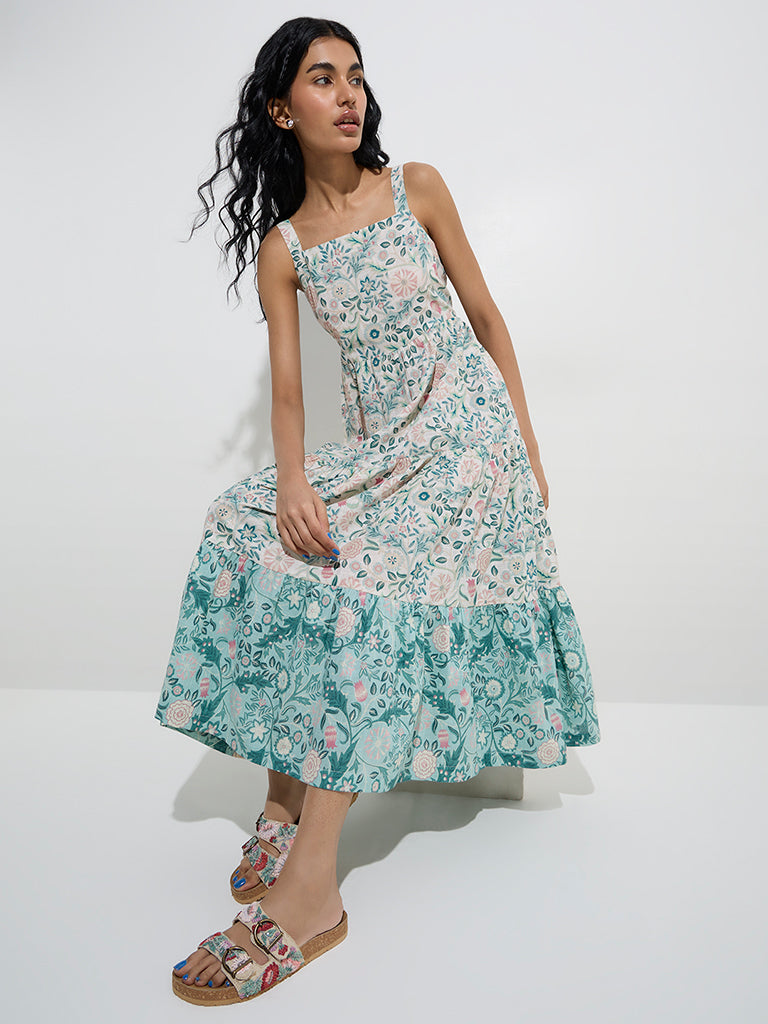 Bombay Paisley Teal Floral Cotton Tiered Dress with Jacket
