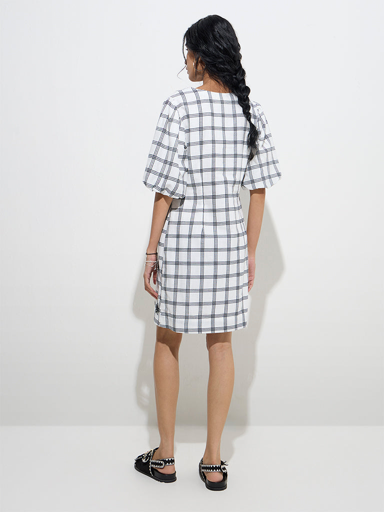 Bombay Paisley White Checkered Cotton Straight Dress