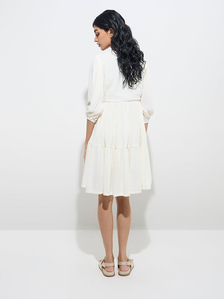 Bombay Paisley White Embroidered Cotton Tiered Dress