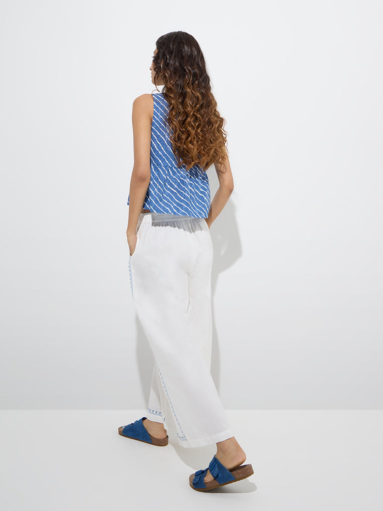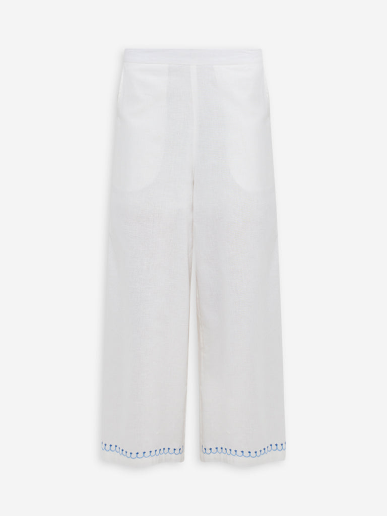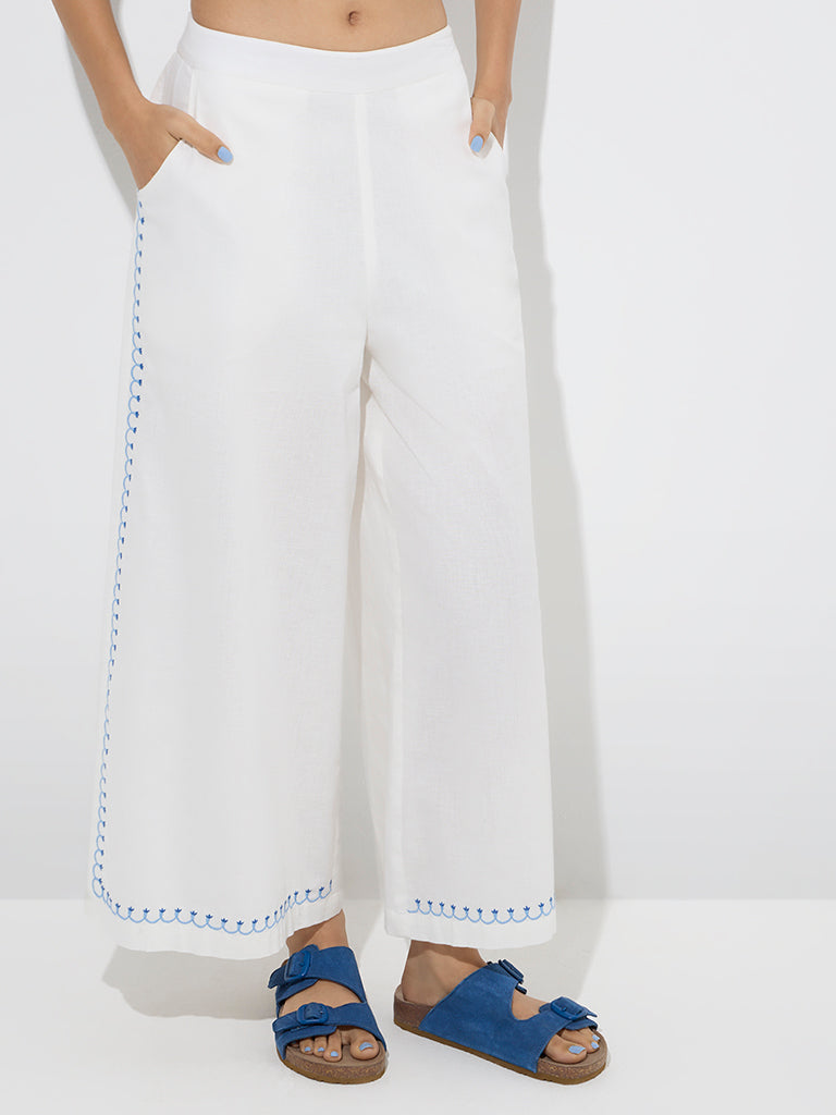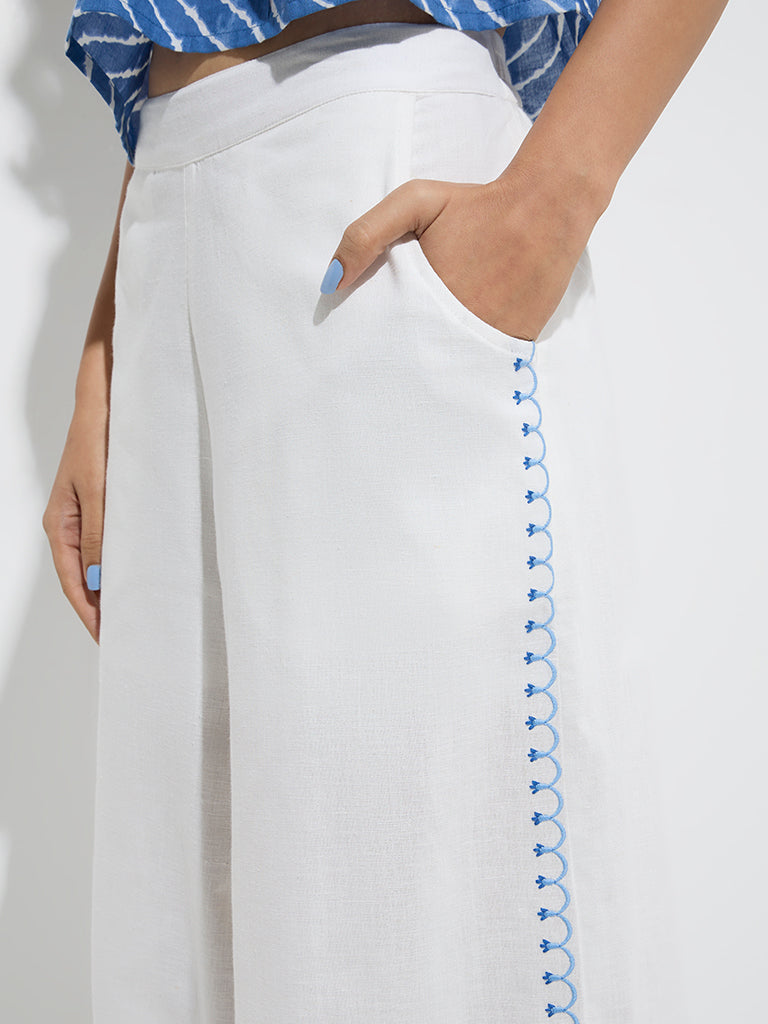 Bombay Paisley White Floral Detailed Cotton-Blend Palazzos
