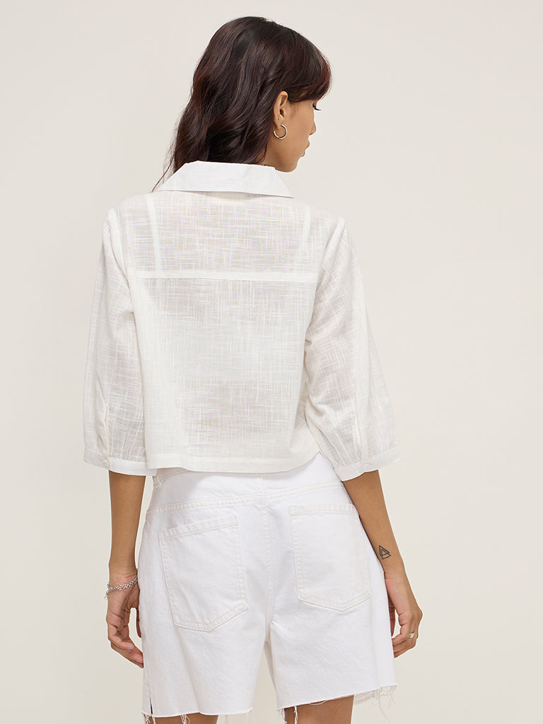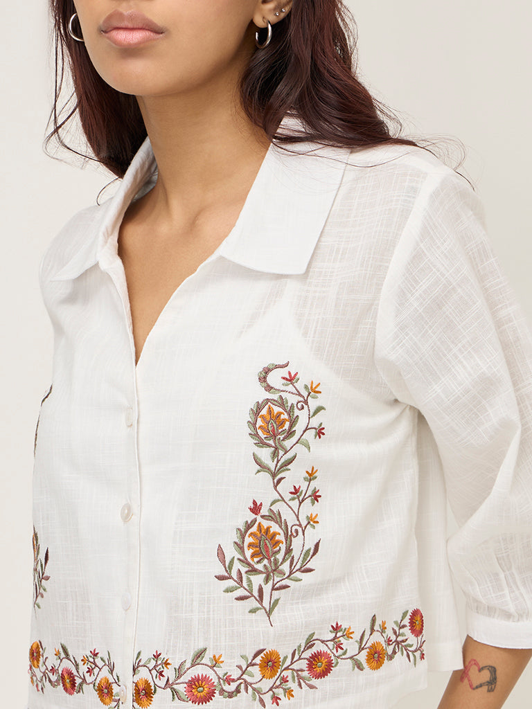 Bombay Paisley White Floral Embroidered Cotton Shirt