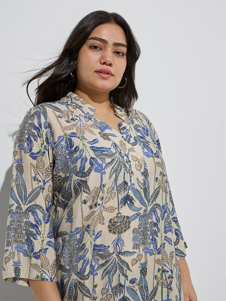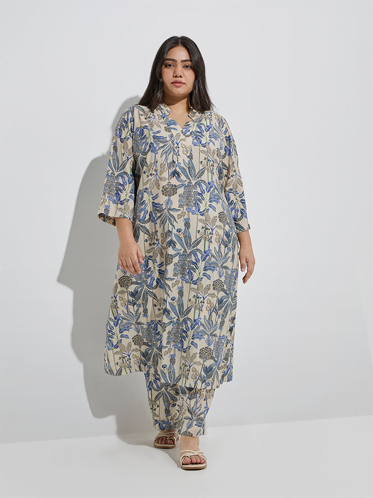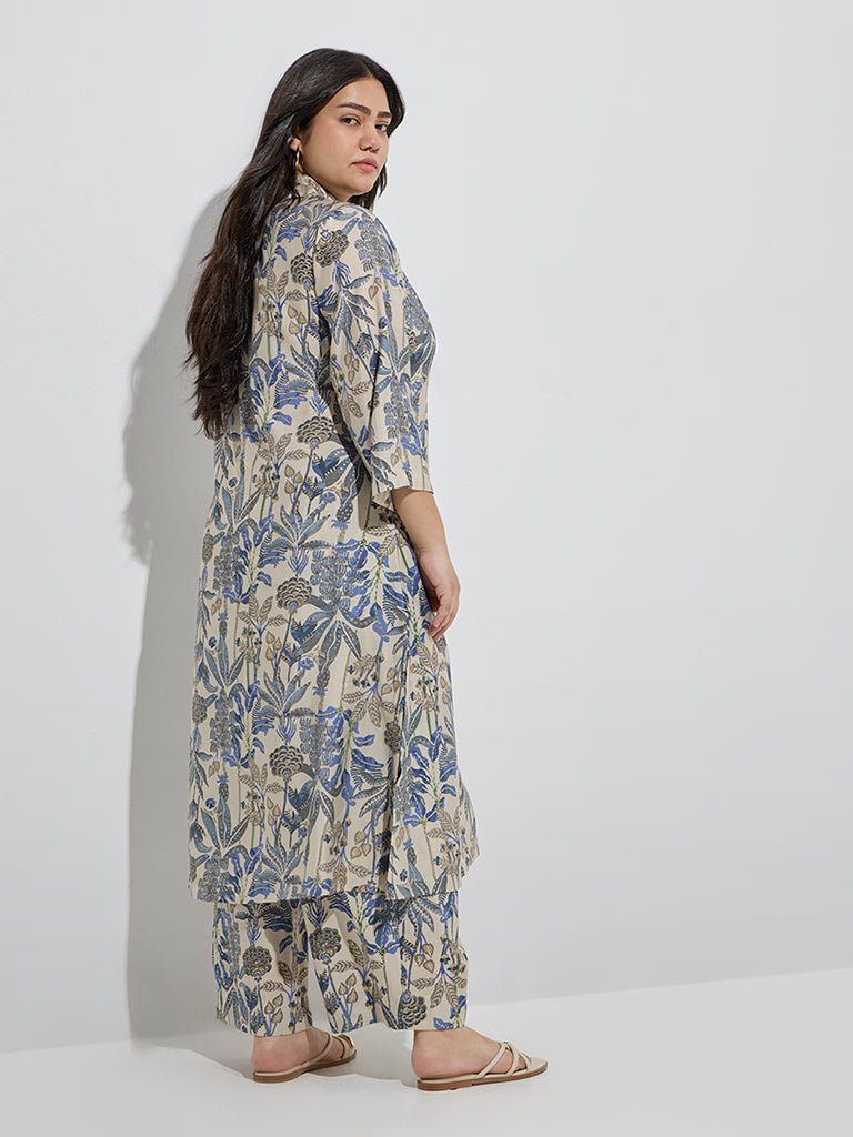 Diza Beige Botanical-Inspired A-Line Kurta