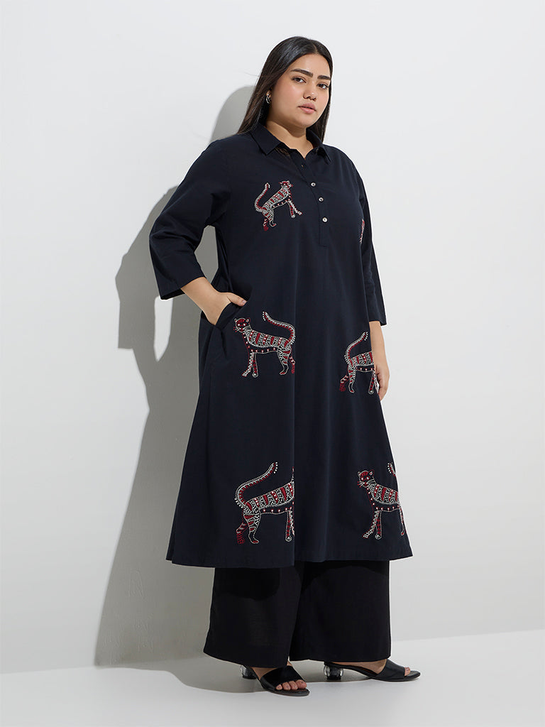 Diza Black Animal Embroidered A-Line Kurta