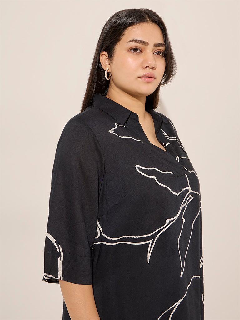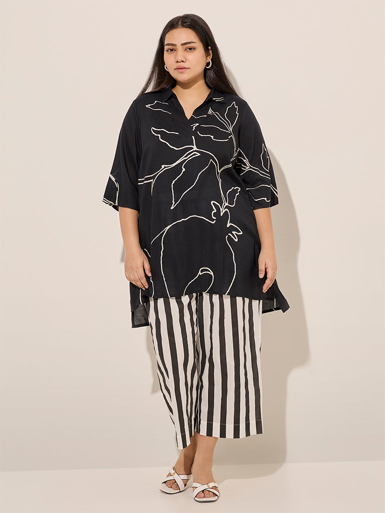 Be the first to review “Diza Black Botanical Printed High-Low Kurta”