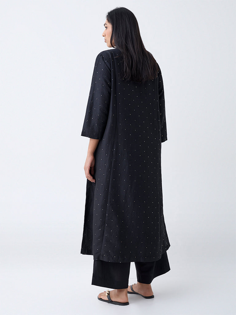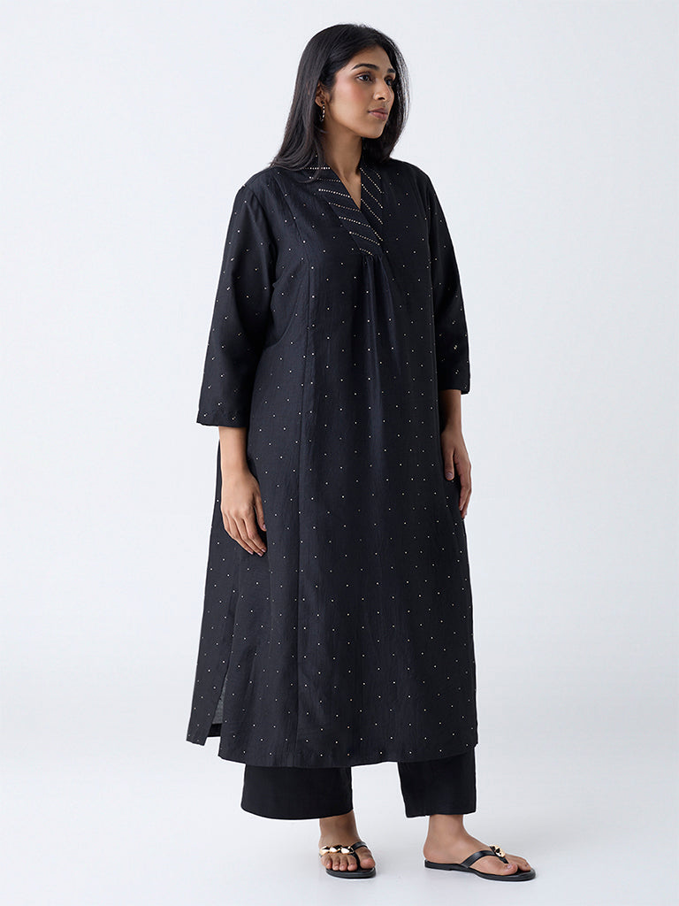 Diza Black Embellished A-Line Kurta