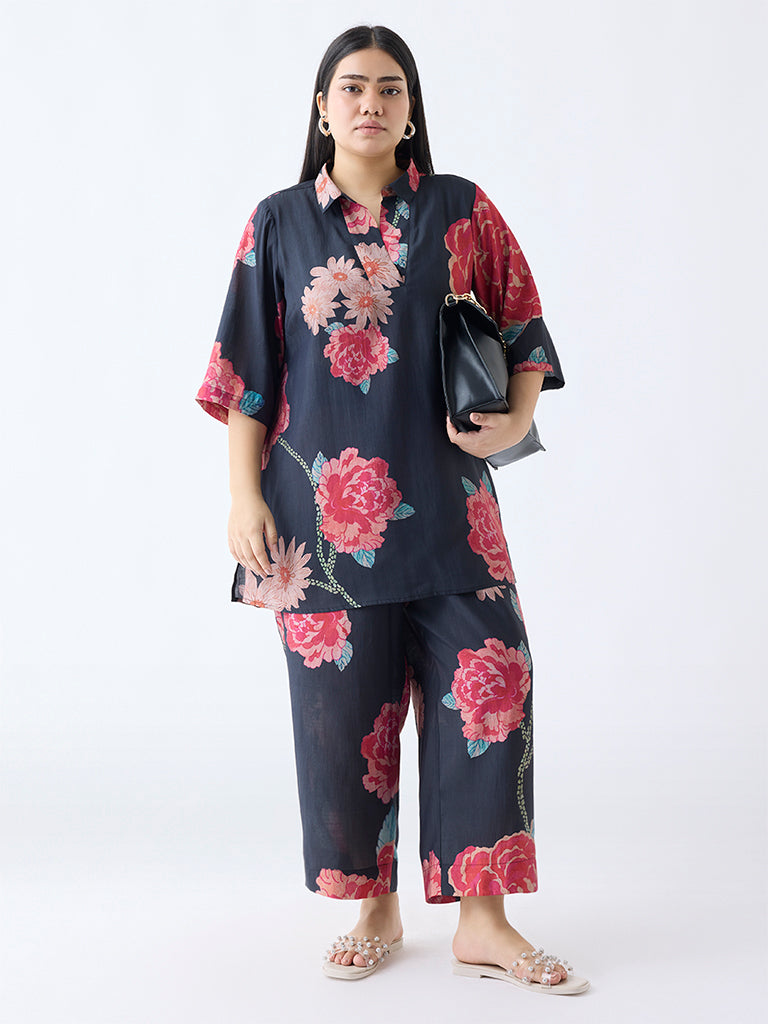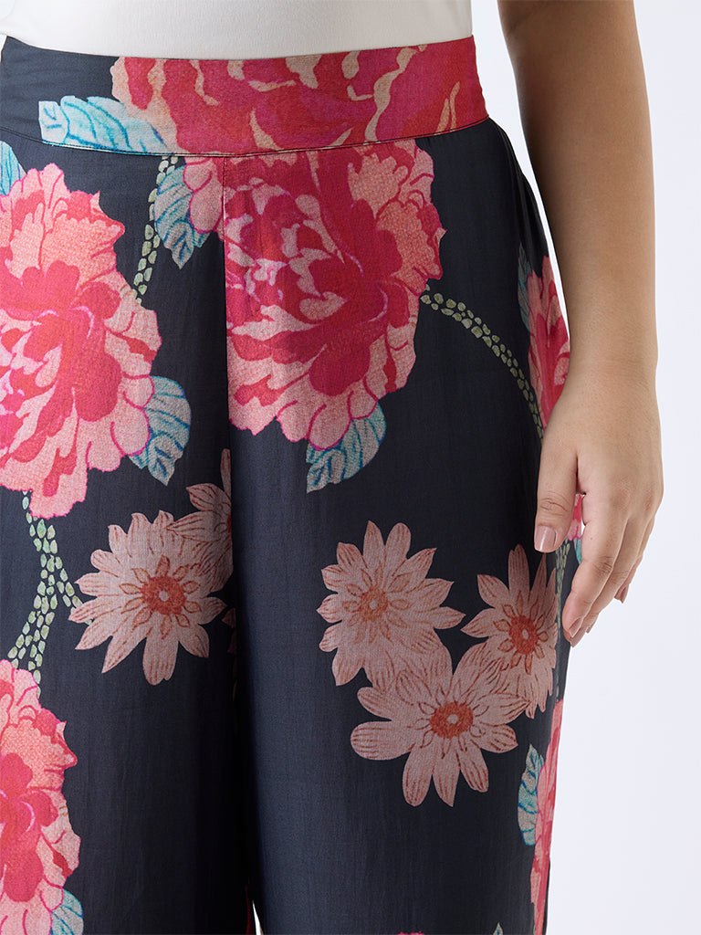 Bring a fresh twist to your festive look with these black ethnic pants from Diza. The oversized floral prints finessed with a soft. stretchy waistband offer both style and comfort. making them ideal for long hours of wear.