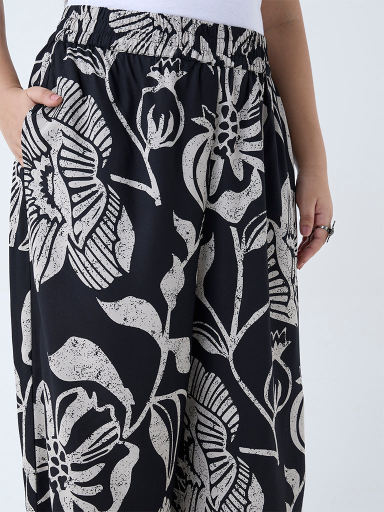 Infuse your wardrobe with nature-inspired flair through these black ethnic pants from Diza. Adorned with foliage motifs. this lightweight pair is crafted for comfort with a smooth elastic waistband and side pockets for added utility.