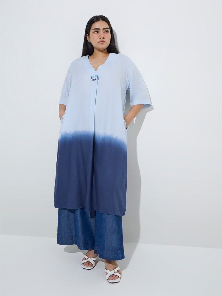Diza Blue Ombre-Finish A-Line Kurta