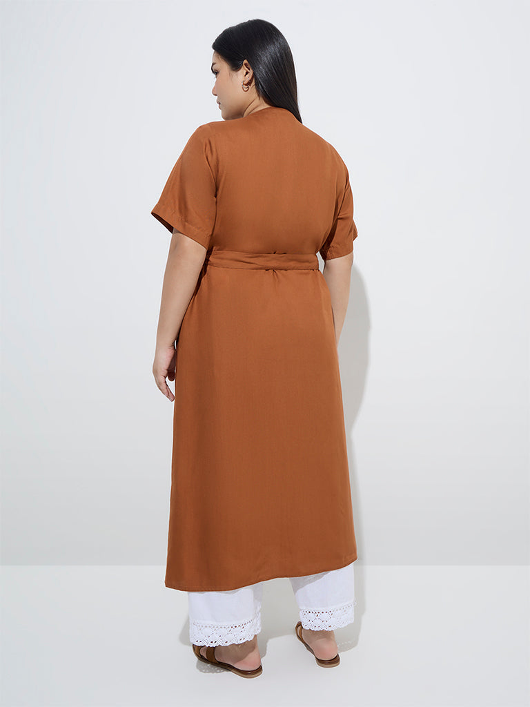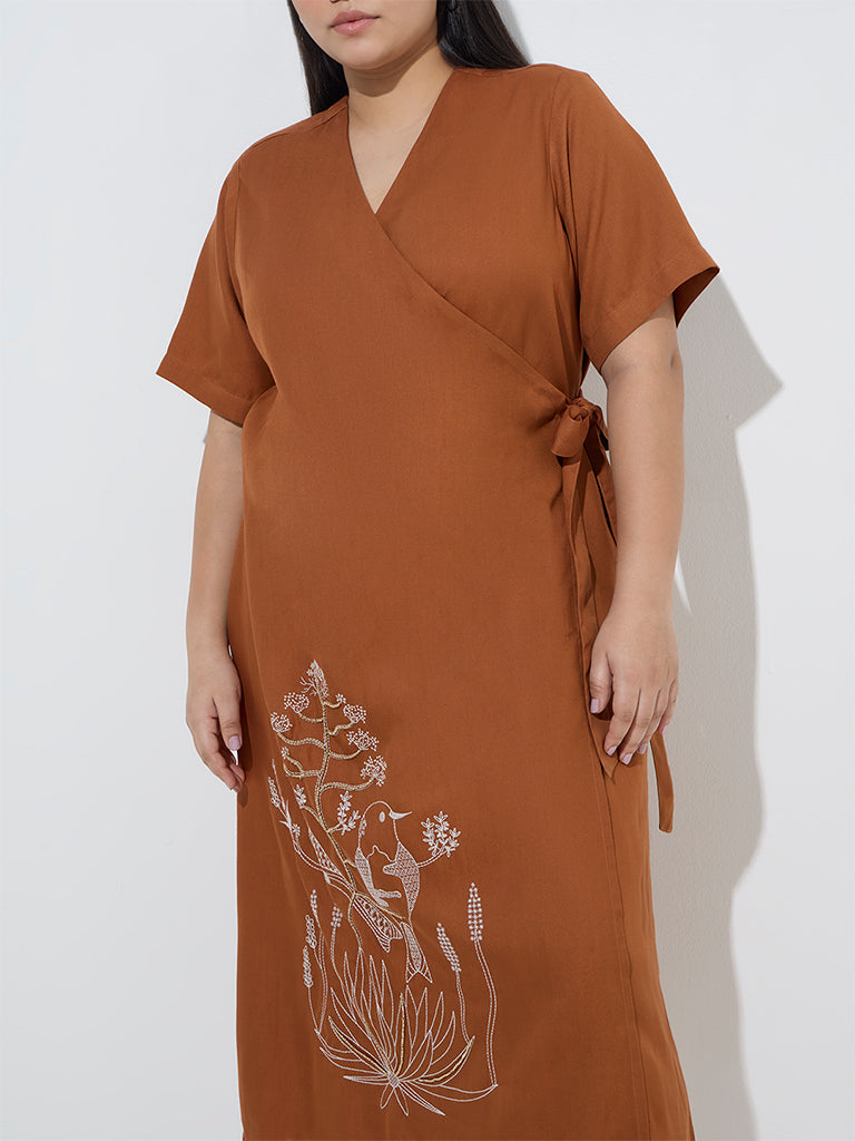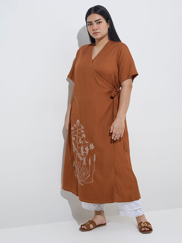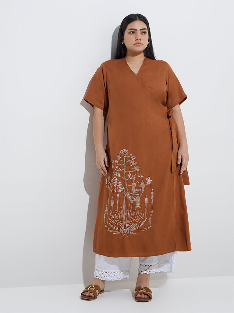 Diza Brown Nature-Inspired Wrap-Style A-Line Kurta