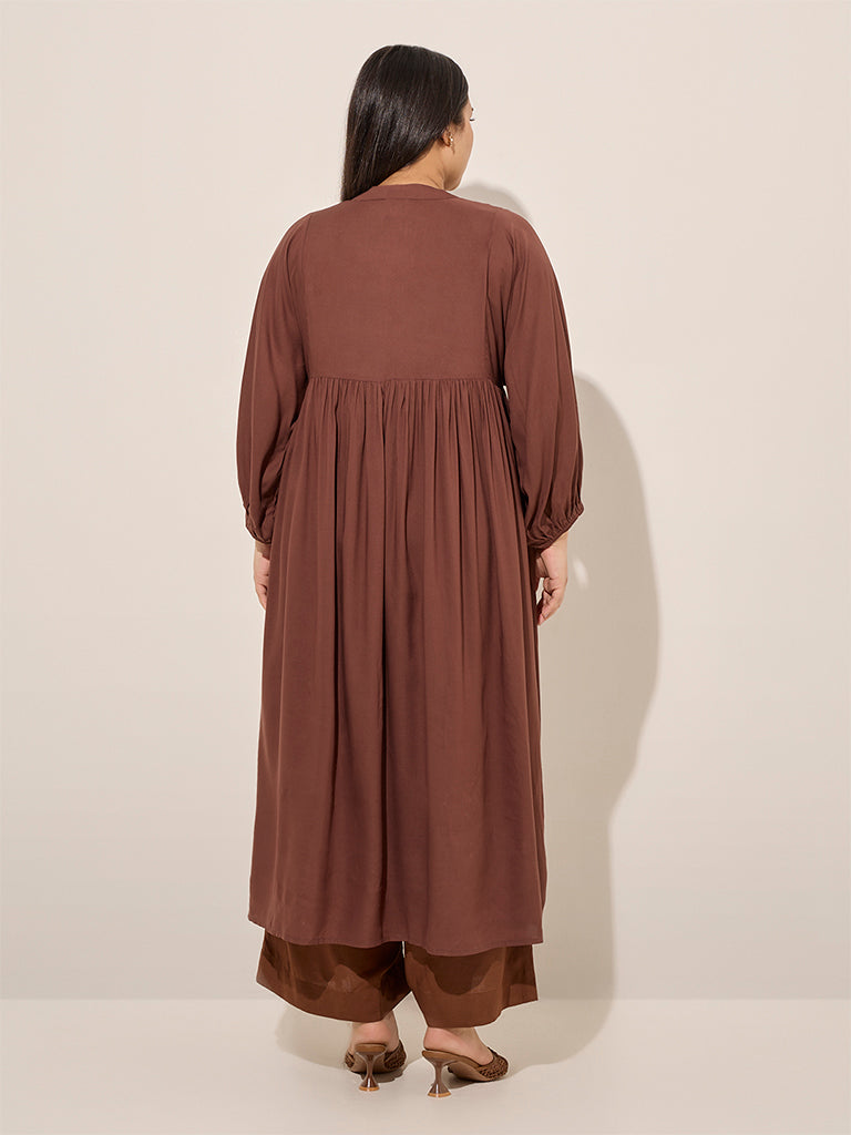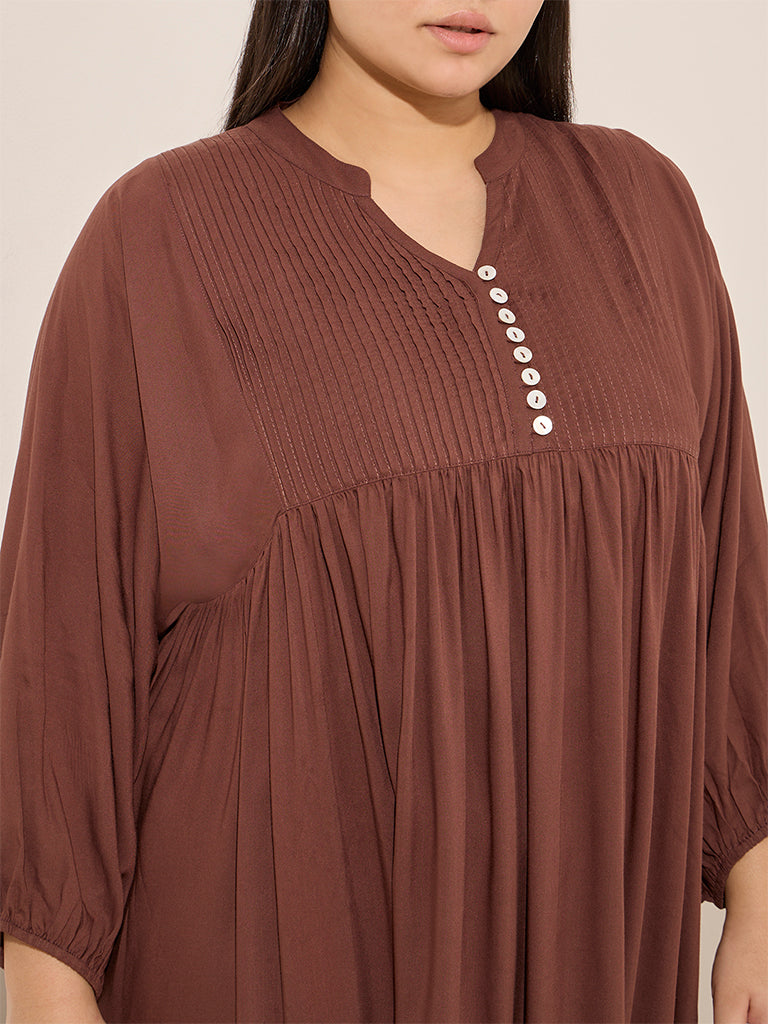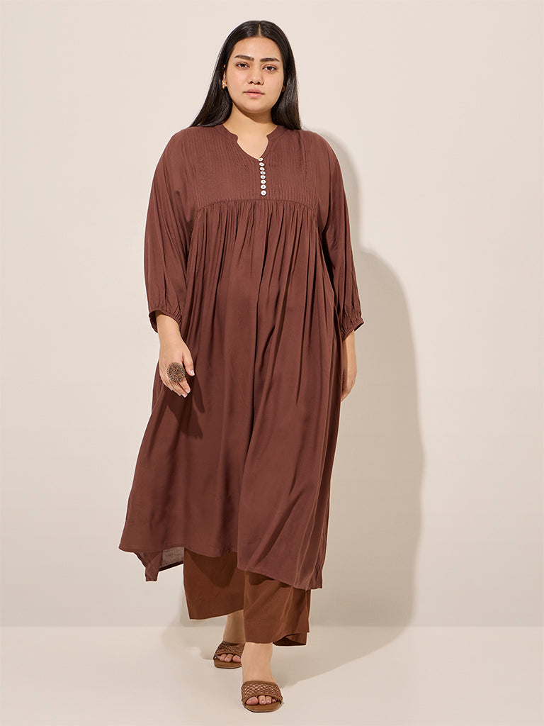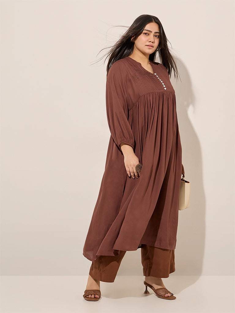 Diza Brown Pintuck Detailed A-Line Kurta