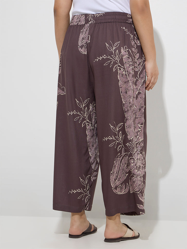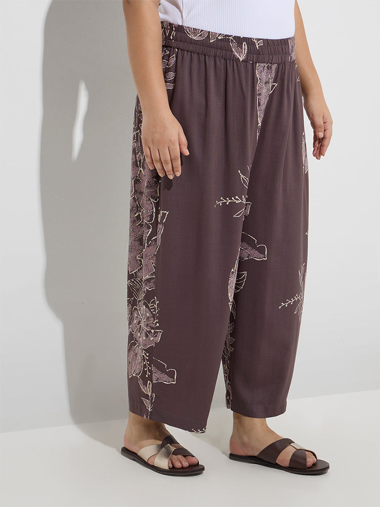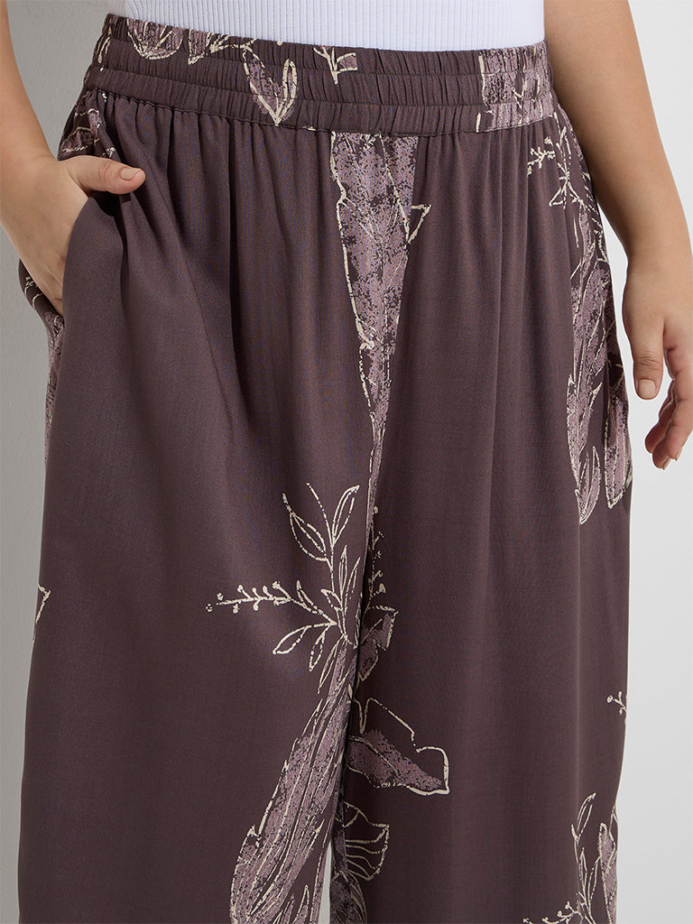These dark brown ethnic pants from Diza are detailed with foliage prints that lend a natural. earthy charm. Tailored from a breathable fabric. they promise day-long ease with a soft elasticated waistband. adjustable drawstrings. and handy side pockets.