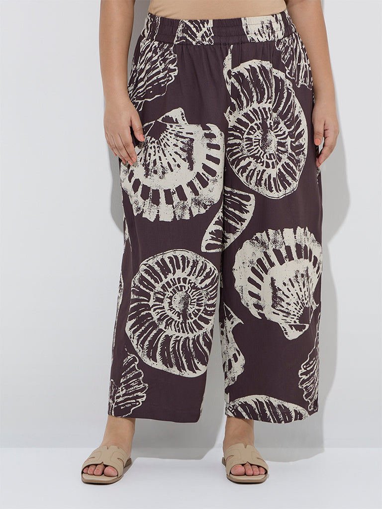 Crafted from a super-soft fabric for all-day comfort. these dark brown ethnic pants from Diza showcase charming seashell-inspired prints. The elasticated waistband with adjustable drawstrings ensures a perfect fit. while side pockets provide practical ease.
