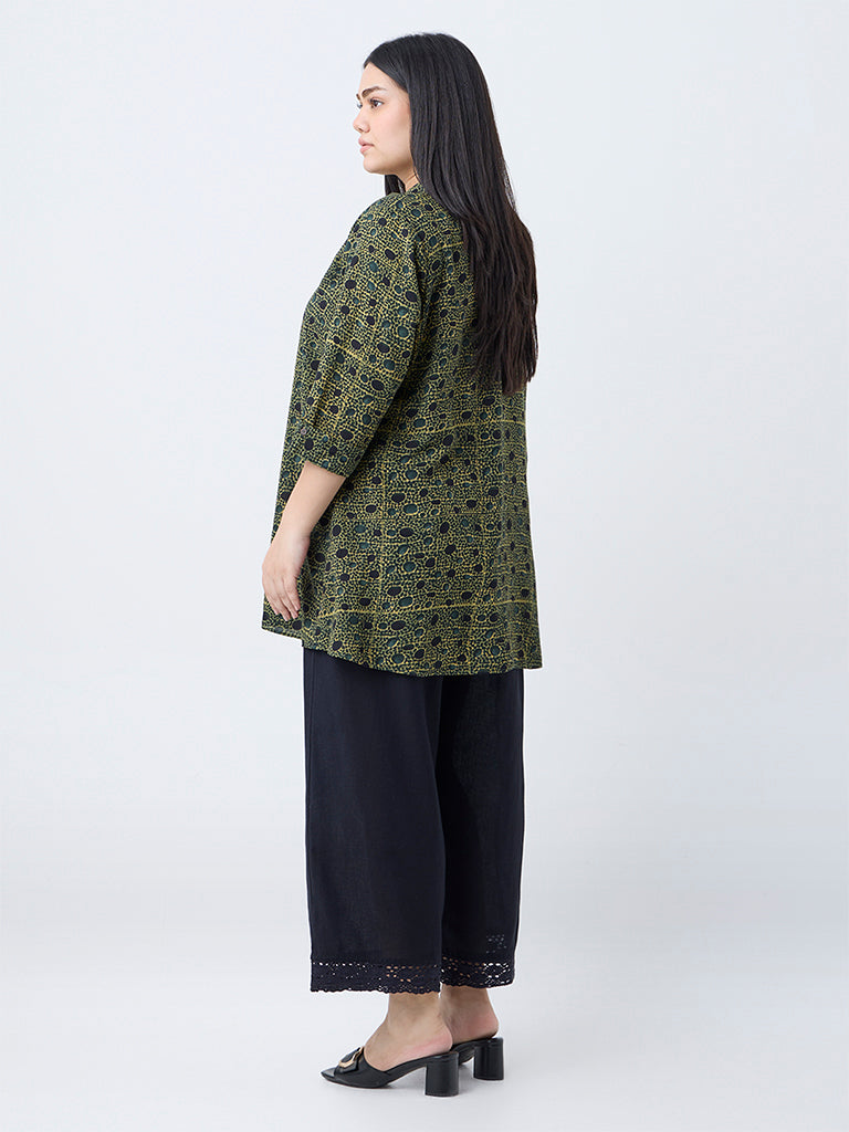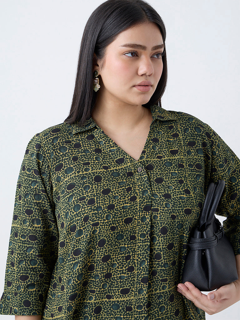 This green tunic from Diza features an all-over print that exudes understated charm. It’s designed with a V-neck collar leading to a single button-down detail and finished with three-quarter sleeves. offering a refined yet easy going silhouette for everyday wear.