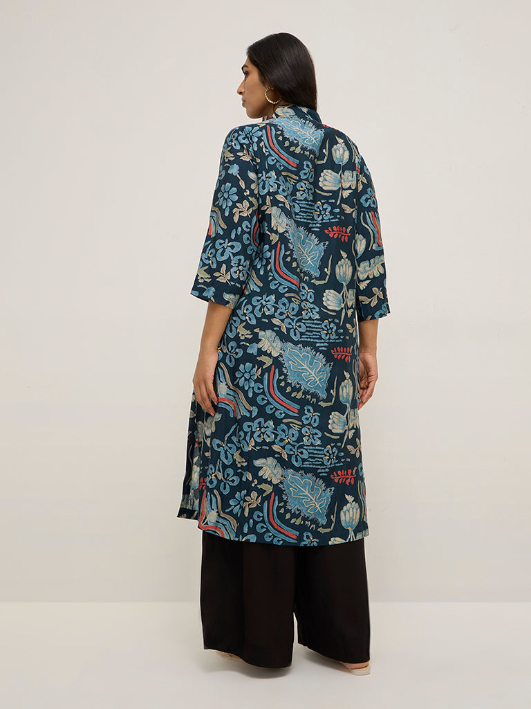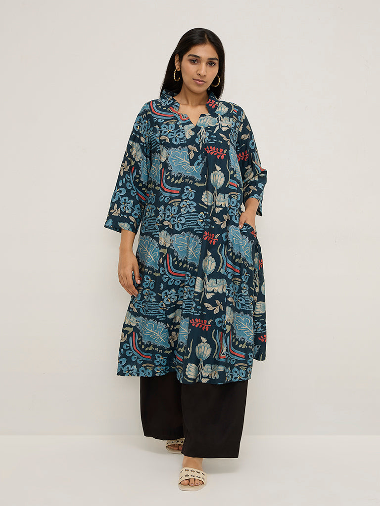 Diza Indigo Botanical Design A-Line Kurta