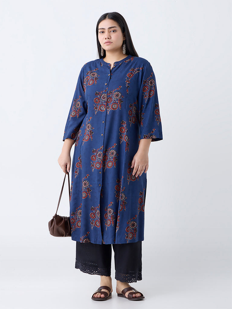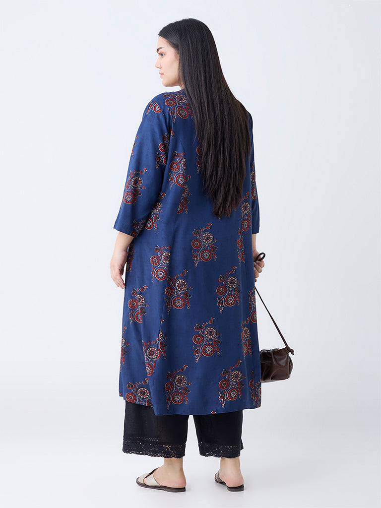 Diza Indigo Printed A-Line Kurta