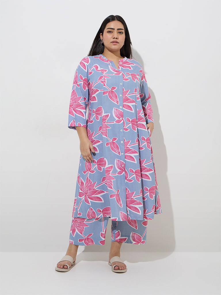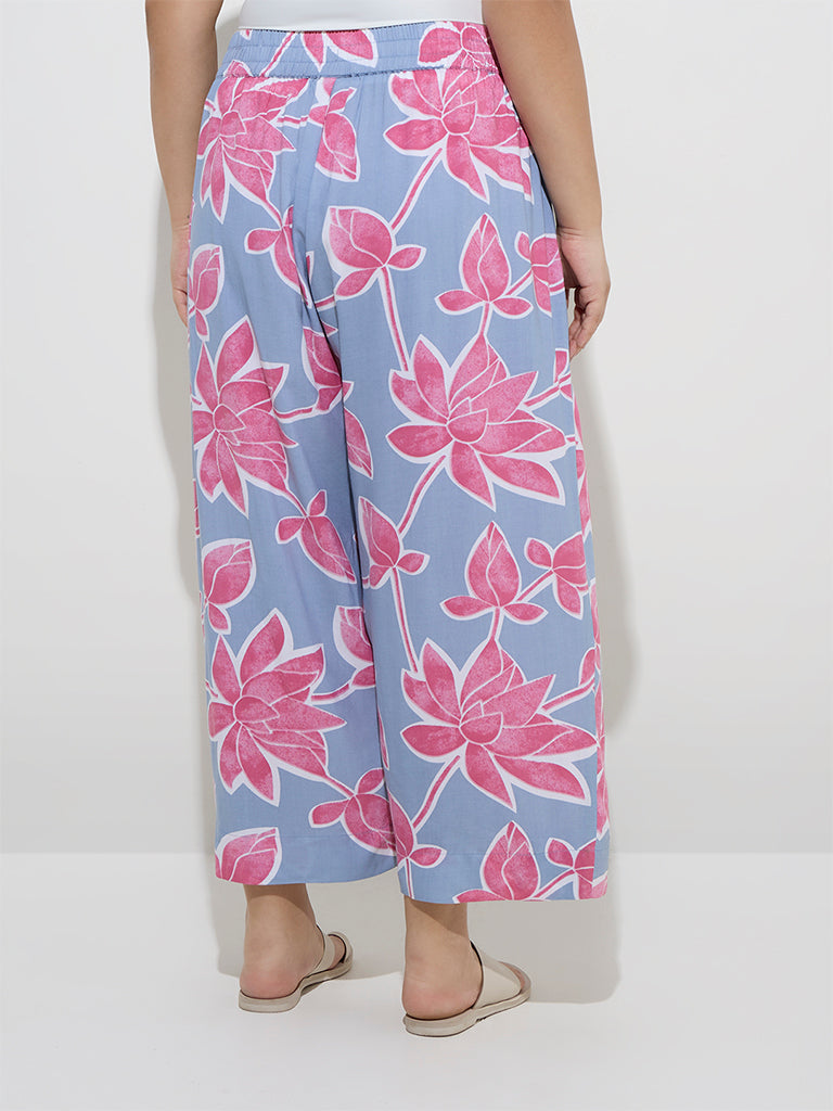 Diza Light Blue Floral Design Ethnic Pants