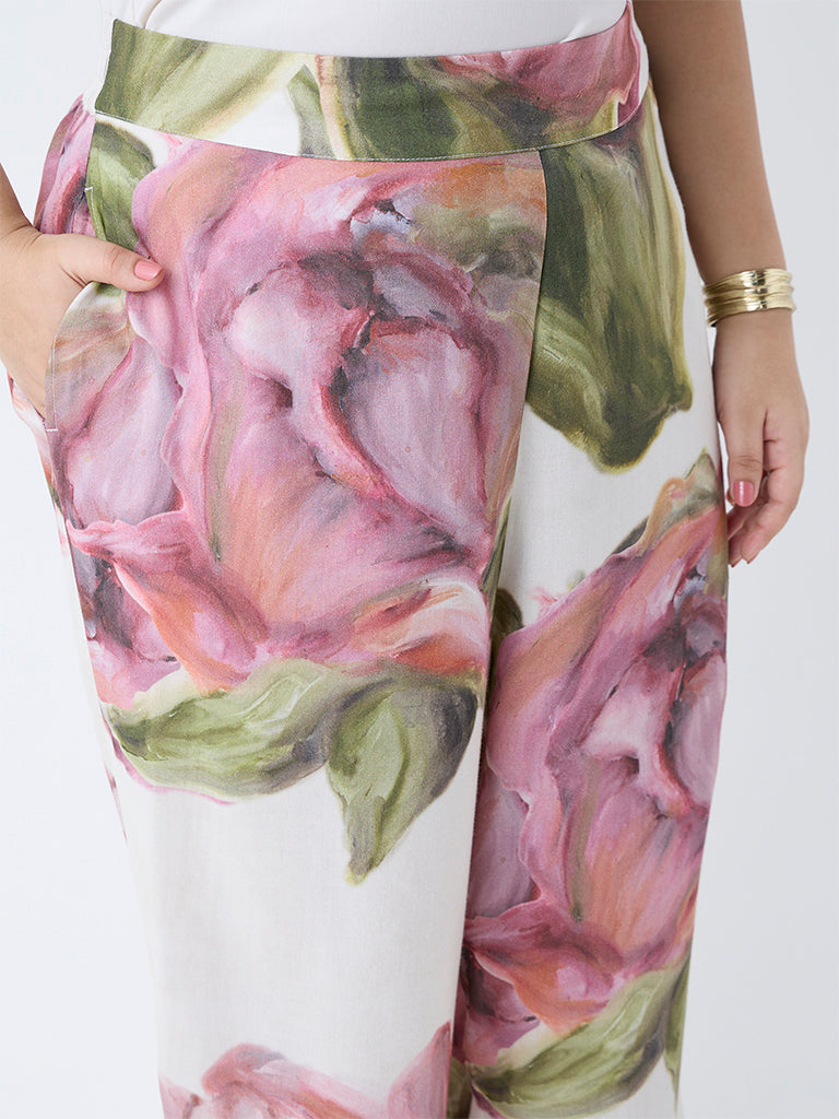 Step into the festivities with graceful charm wearing these multicolour ethnic pants from Diza. Decorated with a vibrant floral print. they’re tailored with a smooth elastic waistband and side pockets for added utility.