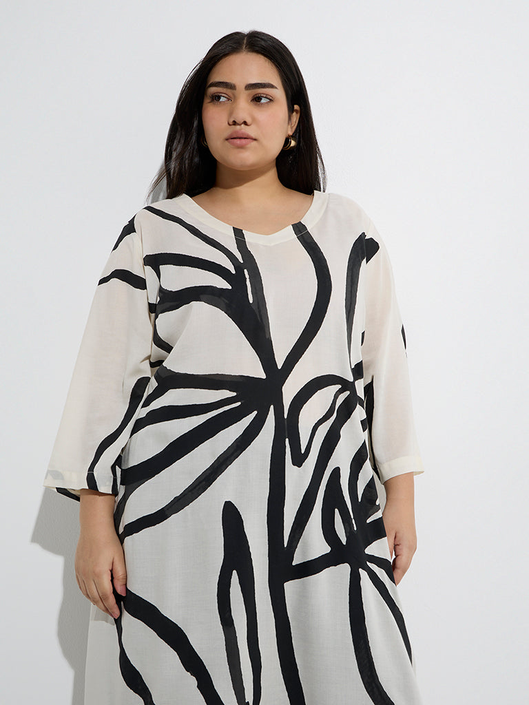 Diza introduces this off-white kurta featuring abstract prints that bring a contemporary flair to everyday ethnic wear. Sculpted in a flattering A-line silhouette from a breathable fabric. it offers all-day comfort with effortless style. A discreet slip pocket adds a practical touch. making it as functional as it is elegant.
