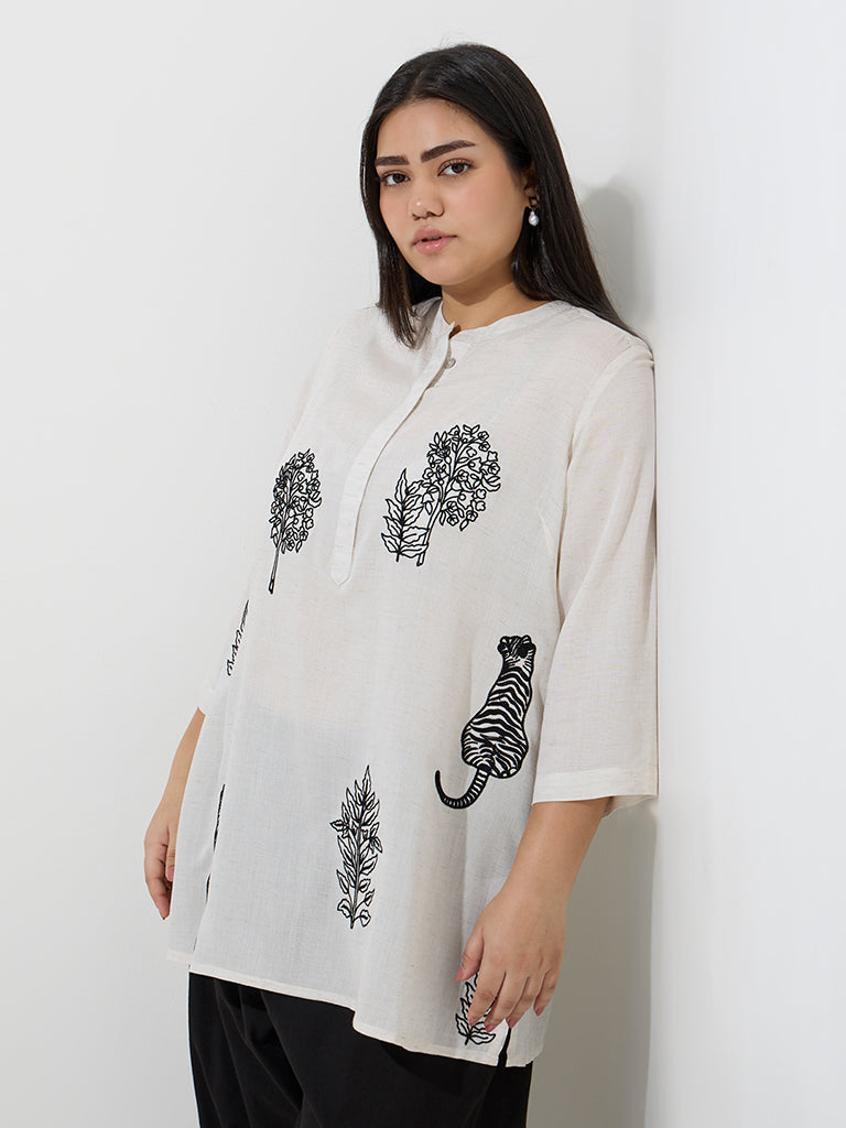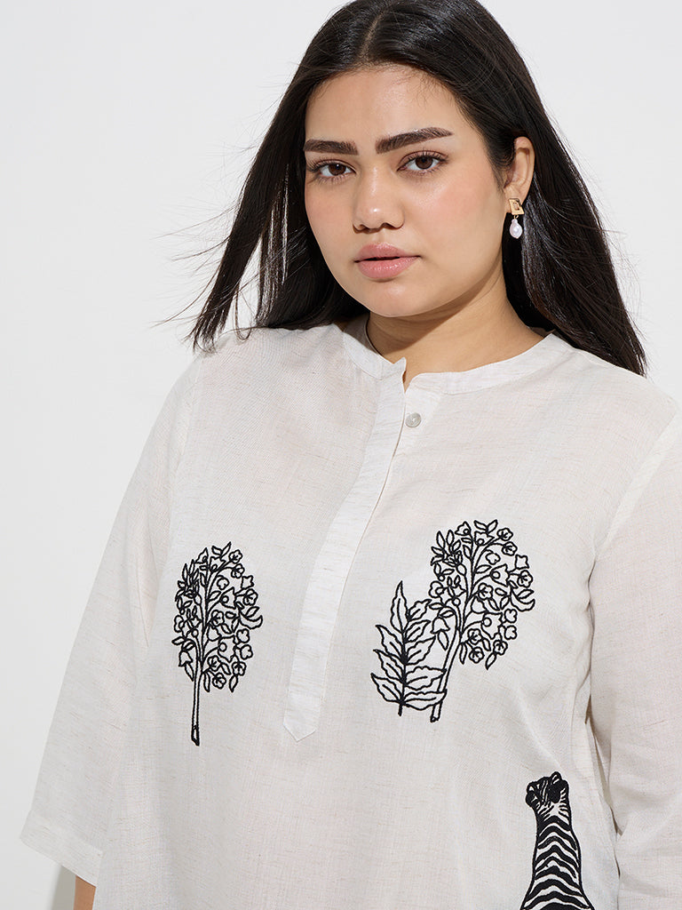 Diza Off-White Embroidered Straight Kurti