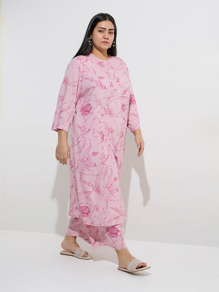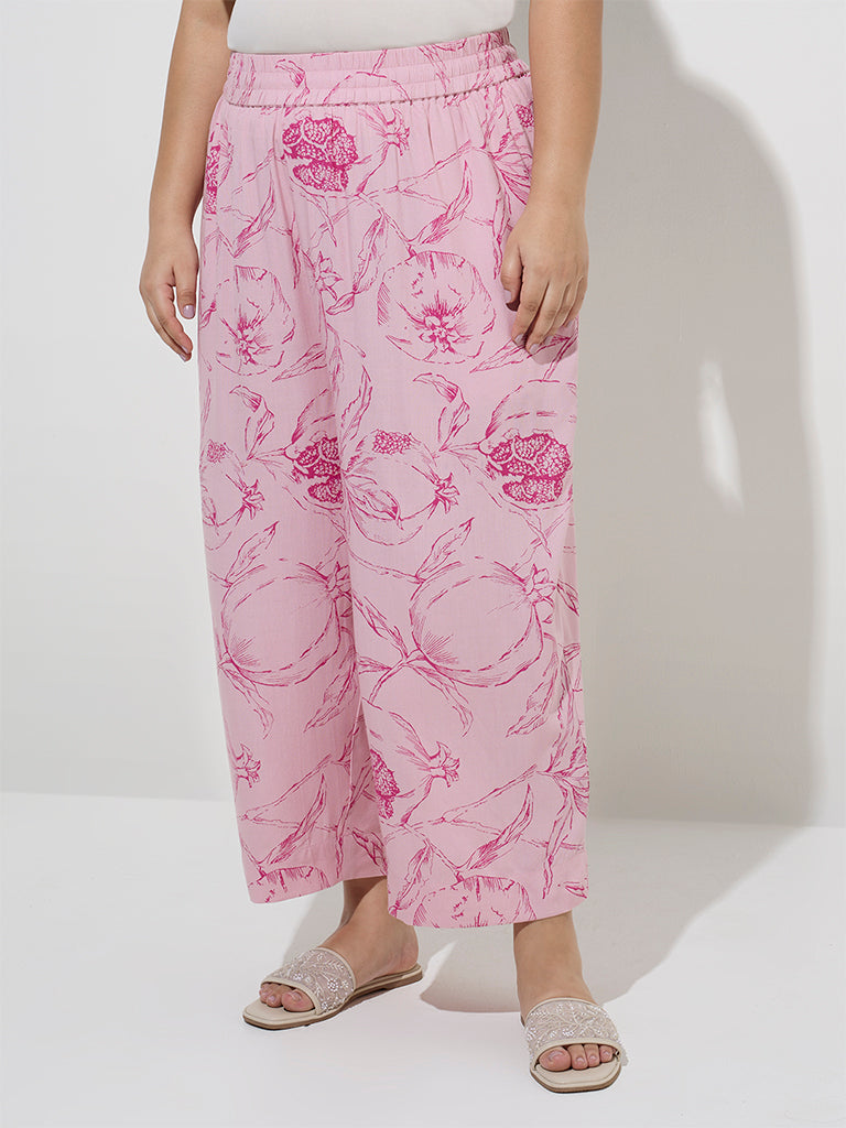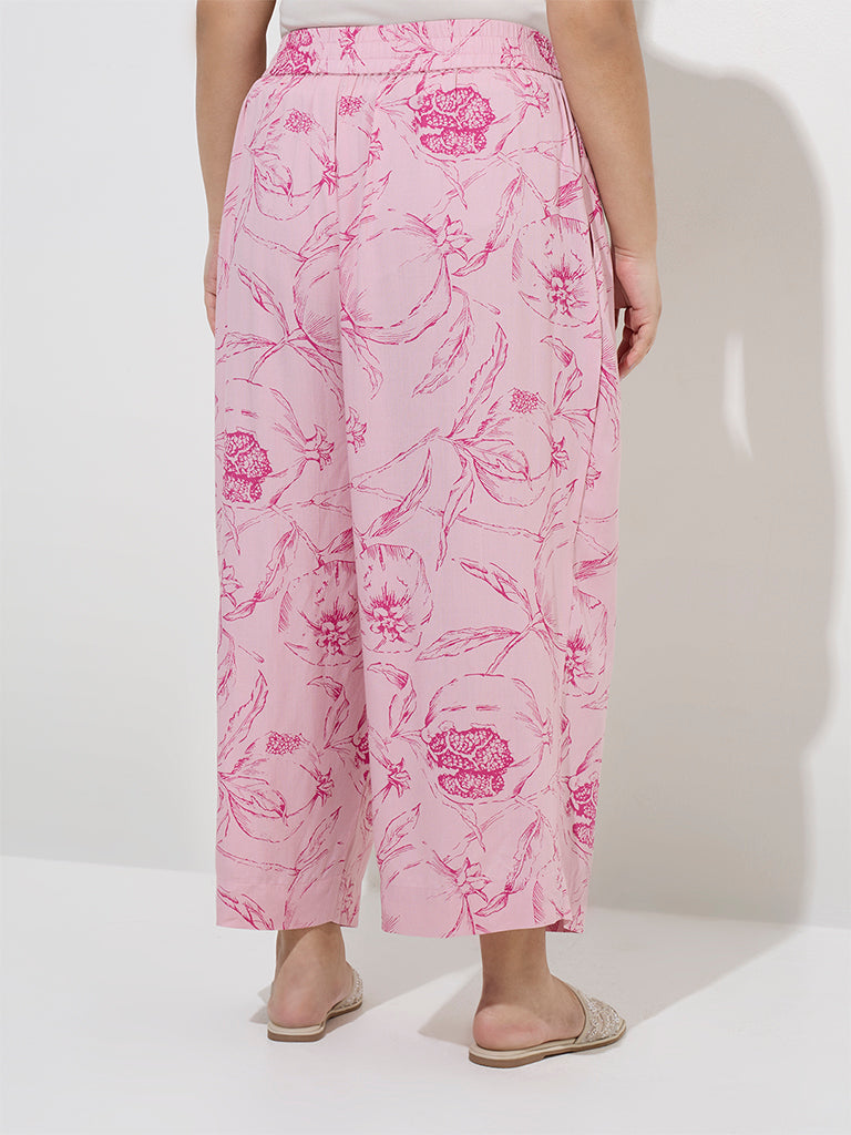 These pink palazzos from Diza showcases floral designs all over. sculpted in a mid-rise frame. Crafted from lightweight fabric. they feature a smooth elasticated waist and functional side pockets. offering a blend of ease and practicality for effortless ethnic styling.