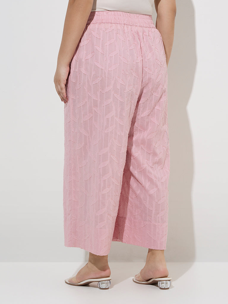 These pink ethnic pants from Diza are adorned with dainty leaf embroidery that adds a graceful flair to your ethnic ensembles. Crafted for comfort. they feature an elasticated waistband with adjustable drawstrings and side pockets. combining style with everyday ease.
