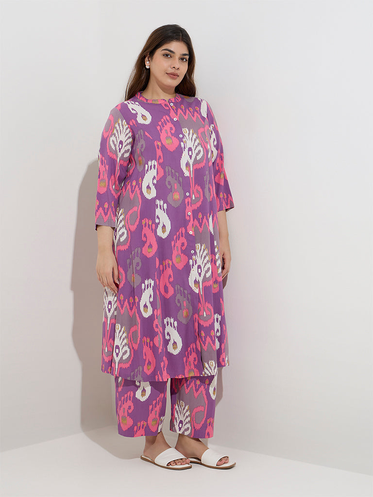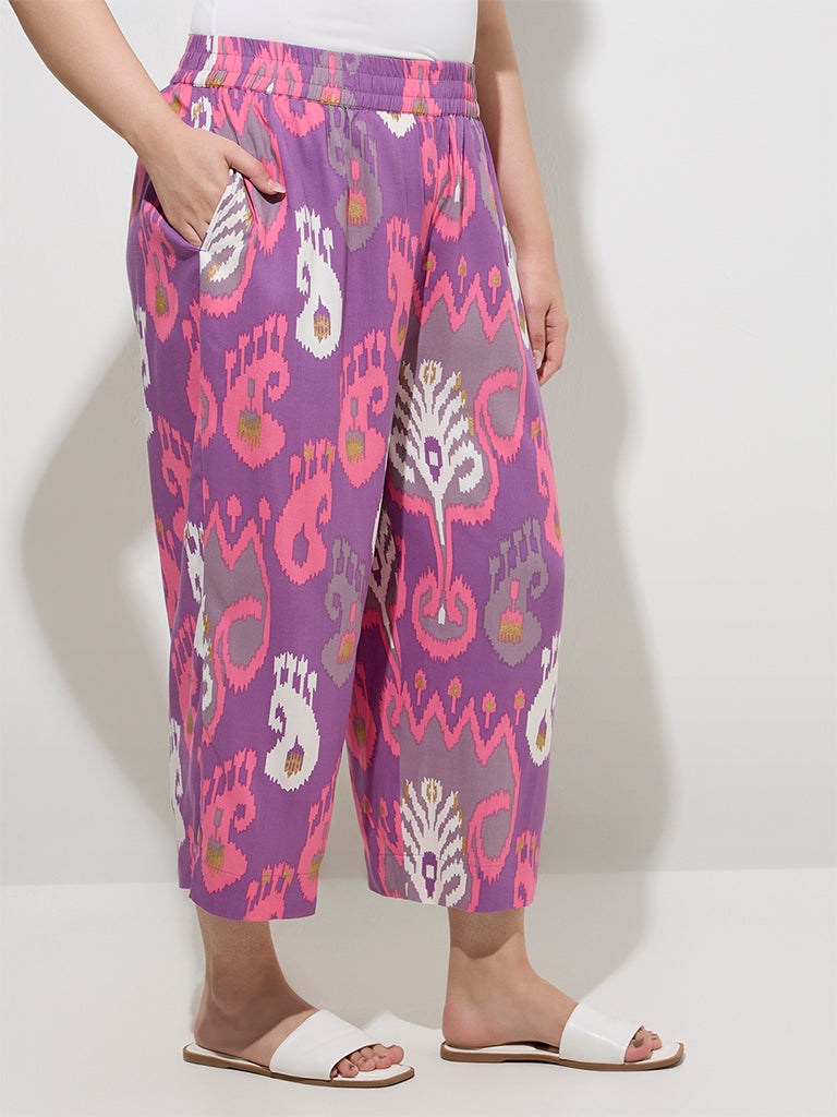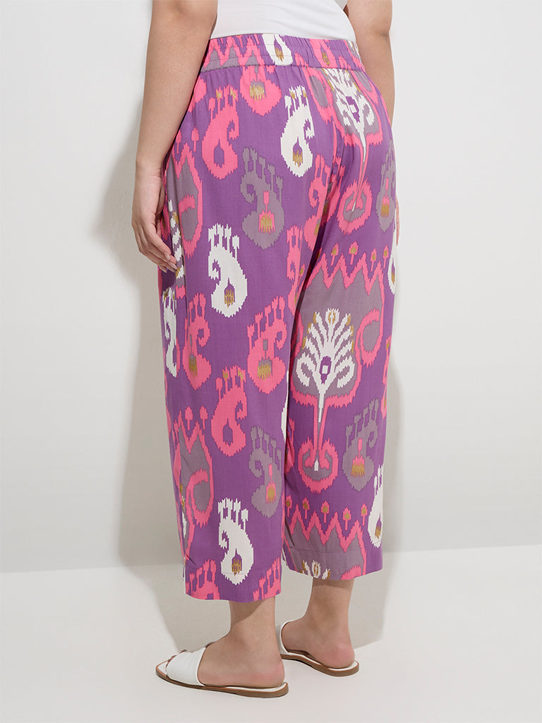 Showcasing paisley ikat motifs. these purple ethnic pants from Diza are crafted from a breathable fabric for everyday comfort. Designed with an elasticated waistband for a flexible fit. they’re finished with side pockets for added practicality.