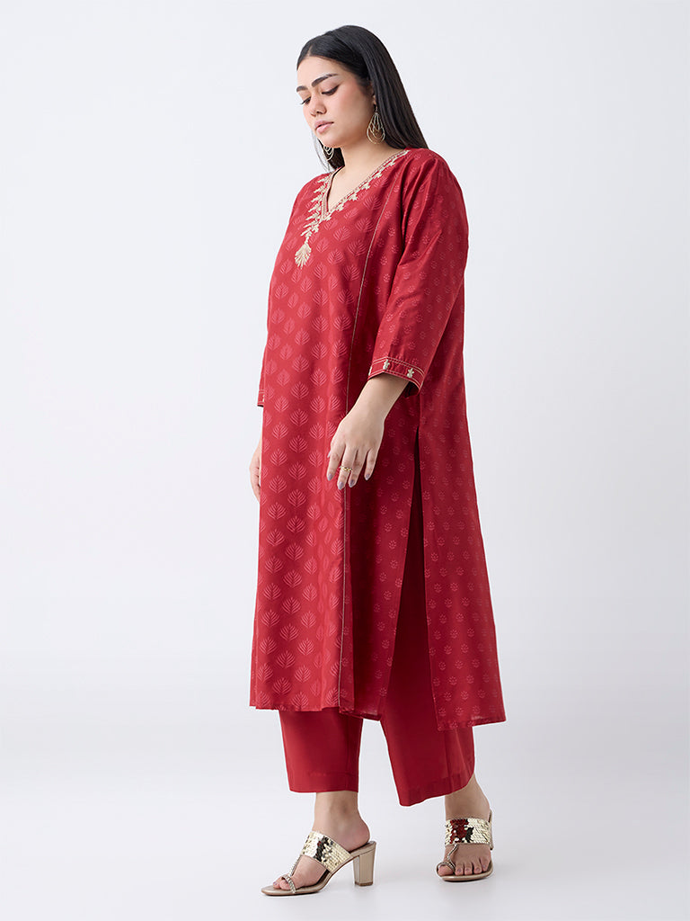 Be the first to review “Diza Red Shell Embroidered A-Line Kurta”
