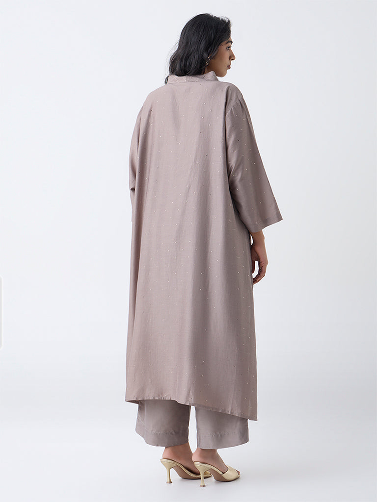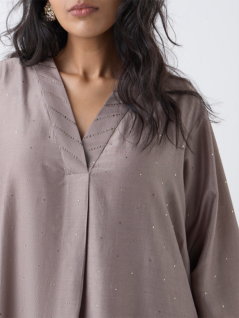 Be the first to review “Diza Taupe Embellished A-Line Kurta”