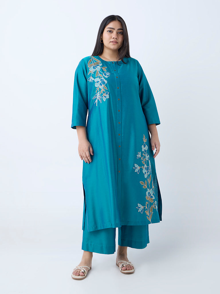 These teal ethnic pants from Diza are tailored from a breathable fabric that feels soft against the skin. The elasticated waistband with adjustable drawstrings ensures a secure fit. while the side pockets add functionality without disrupting the silhouette.