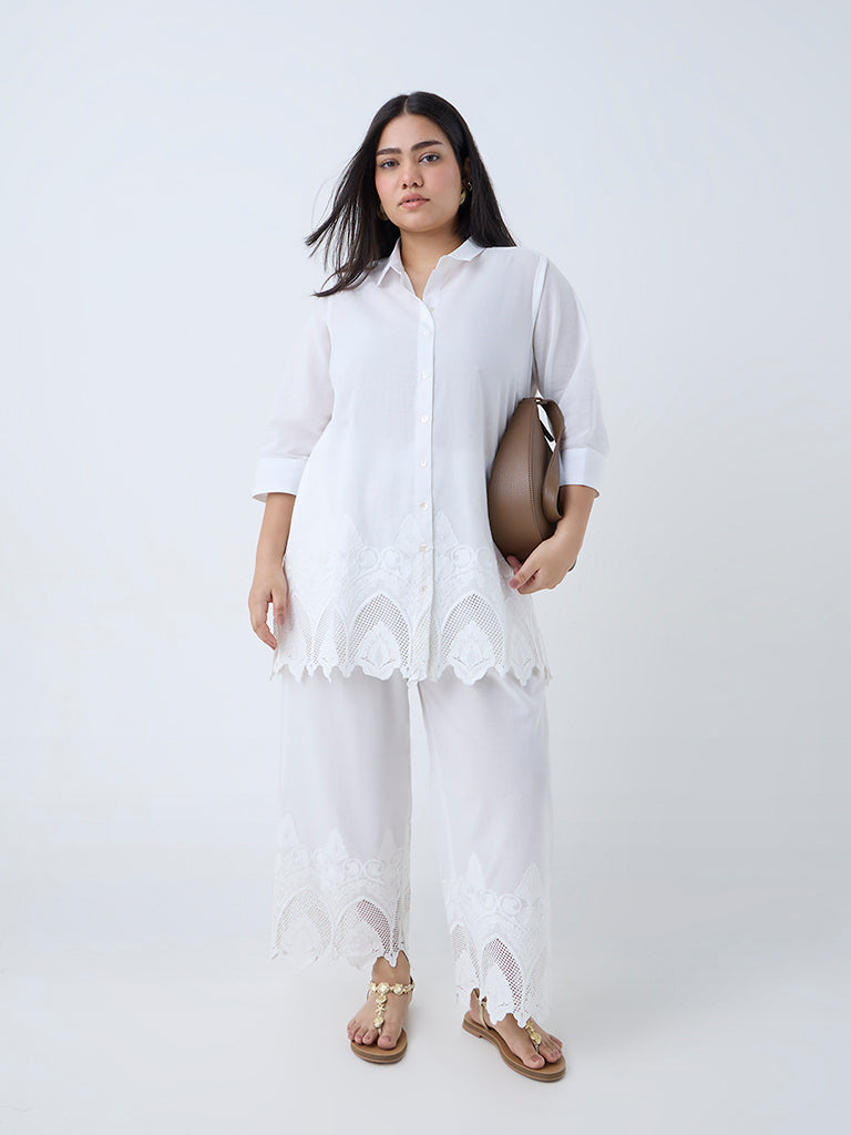Diza White Floral Embroidered Ethnic Pants