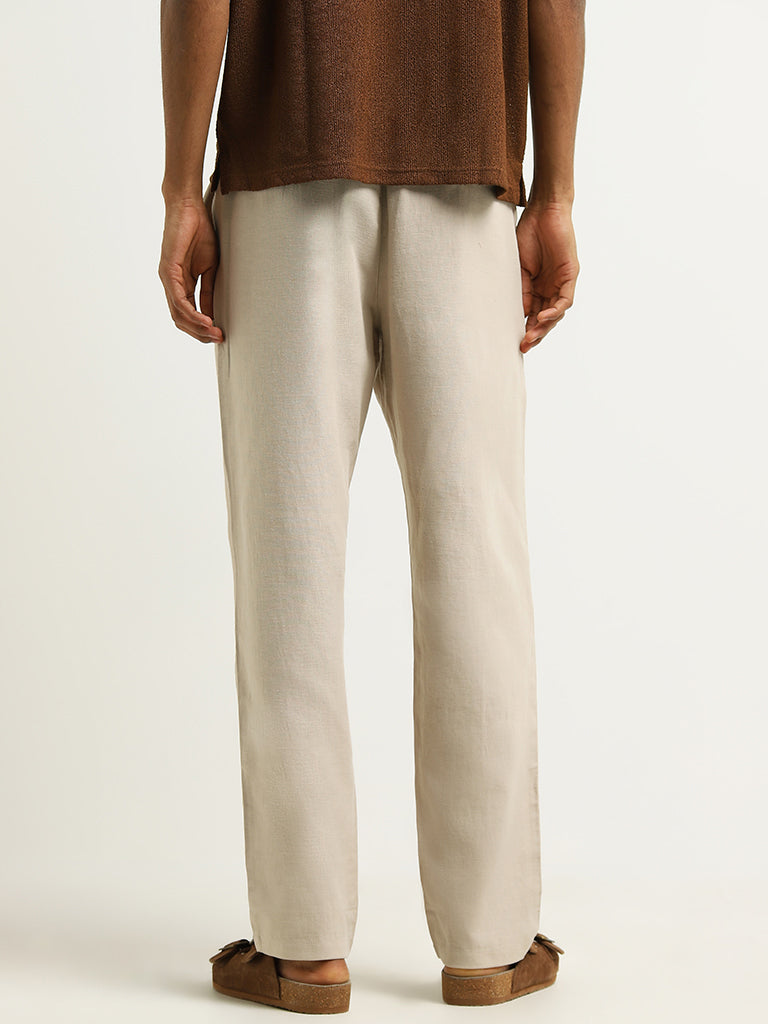 ETA Beige Mid Rise Cotton-Blend Relaxed Fit Trousers