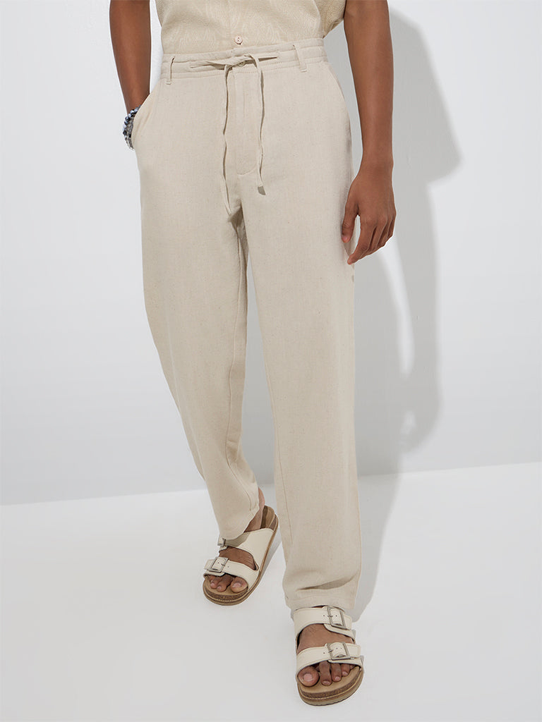 Be the first to review “ETA Beige Relaxed-Fit Mid-Rise Cotton-Blend Chinos”