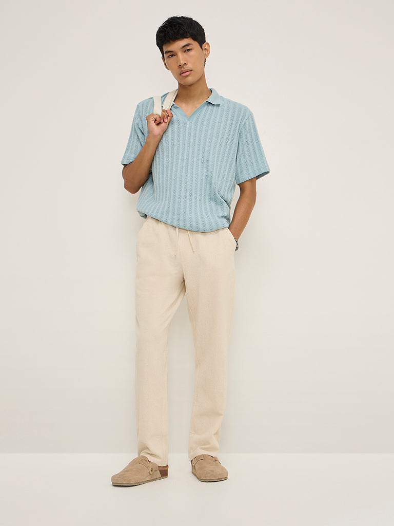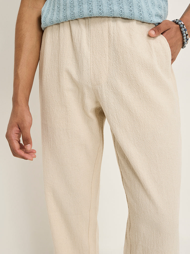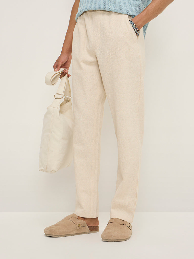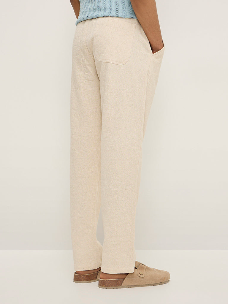 ETA Beige Self-Textured Relaxed-Fit Mid-Rise Cotton Chinos