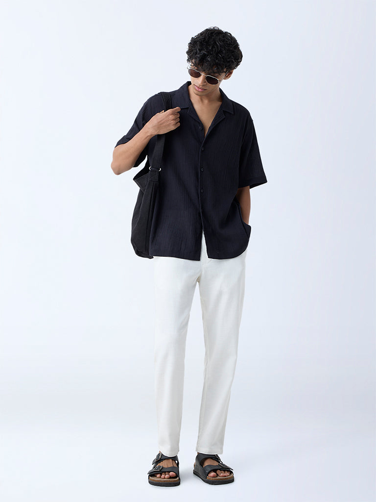 Be the first to review “ETA Black Crinkle-Texture Relaxed-Fit Cotton Shirt”