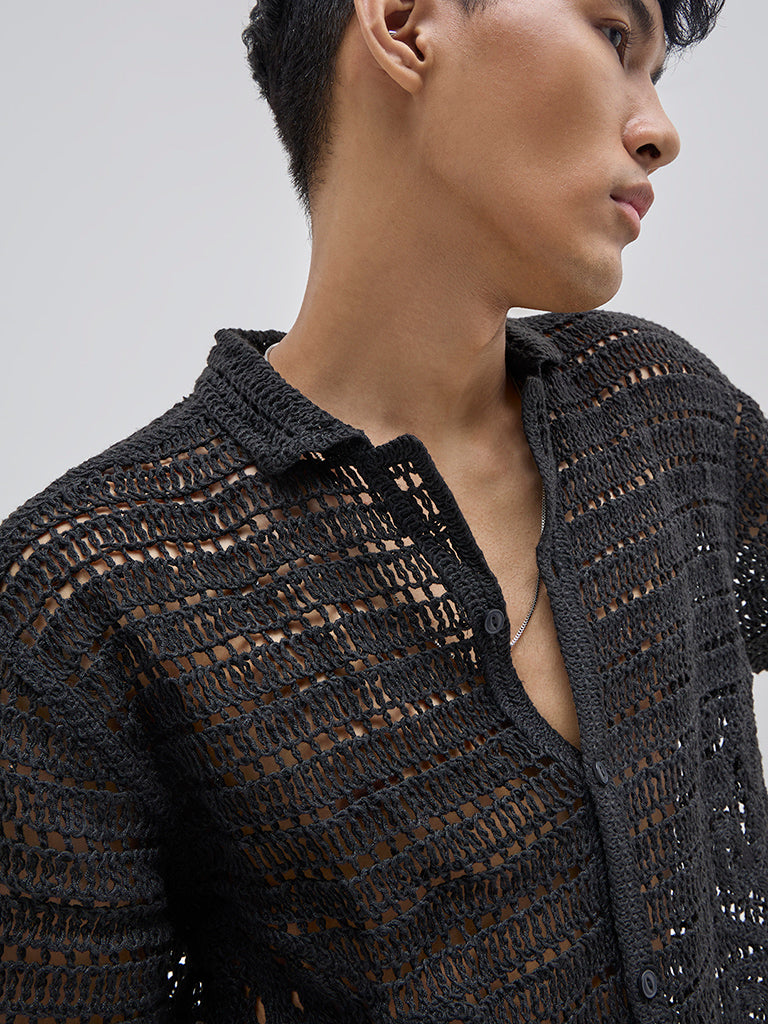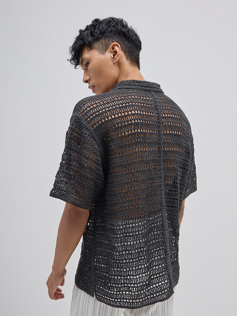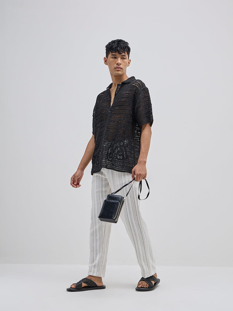ETA Black Crochet Relaxed-Fit Cotton Shirt