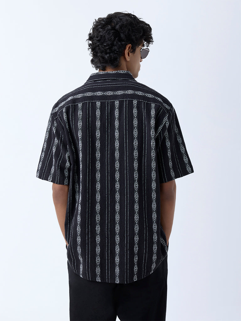 ETA Black Embroidered Relaxed-Fit Cotton Shirt