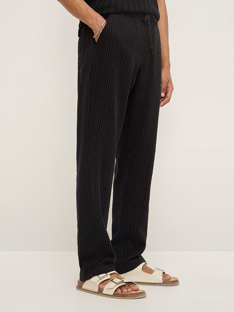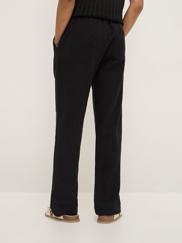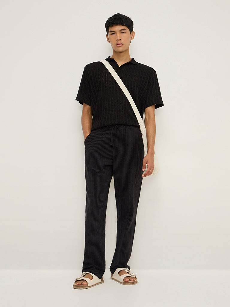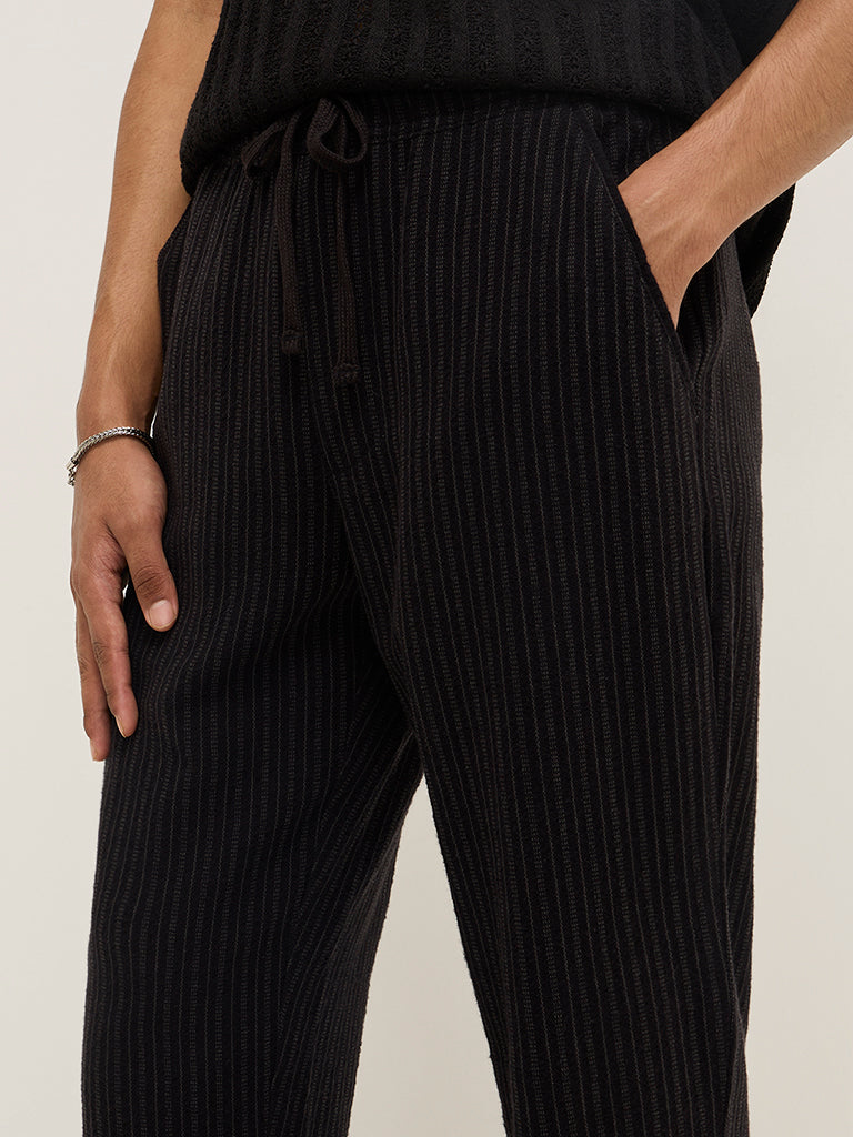 ETA Black Pinstriped Relaxed-Fit Mid-Rise Cotton Chinos