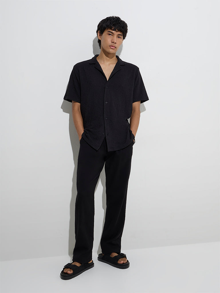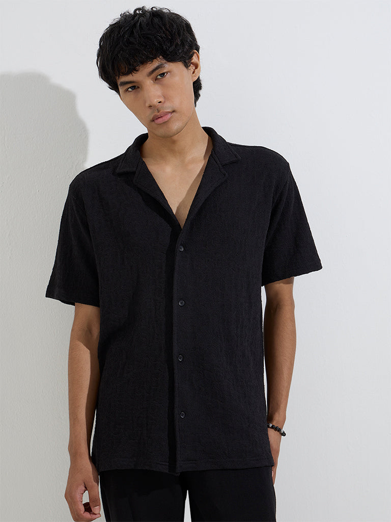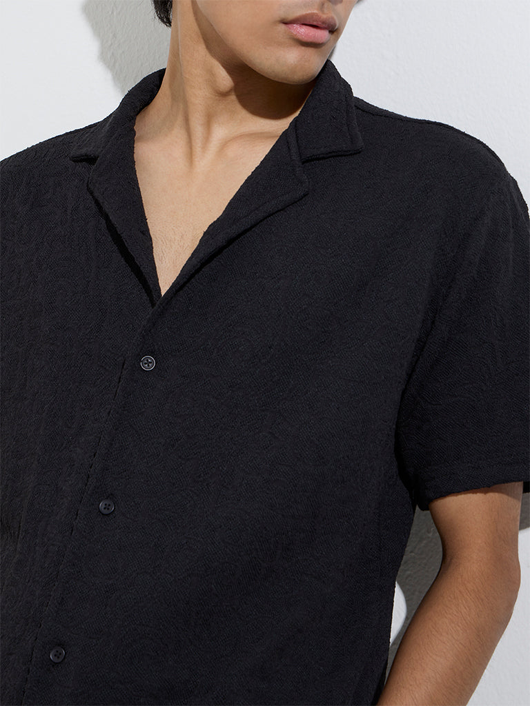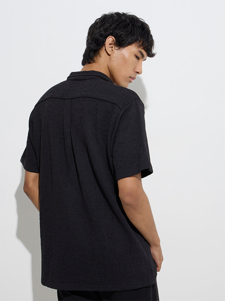 ETA Black Self-Designed Relaxed-Fit Cotton Shirt