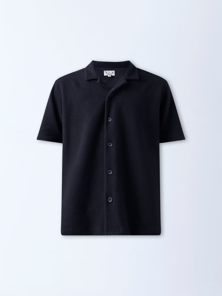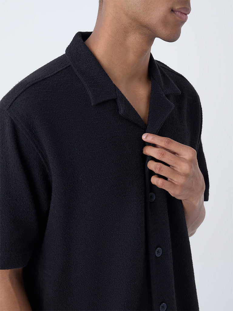 ETA Black Textured Relaxed-Fit Cotton-Blend Shirt