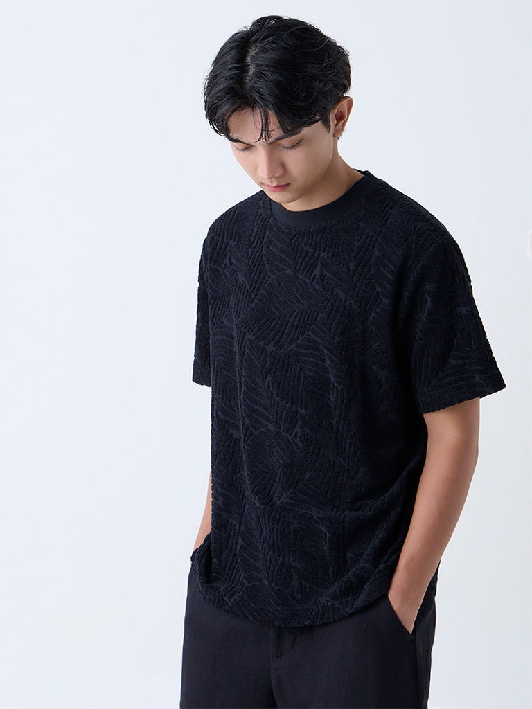 ETA Black Textured Relaxed-Fit Cotton-Blend T-Shirt