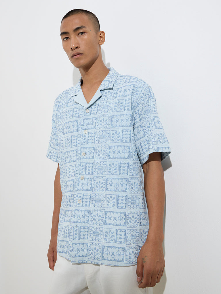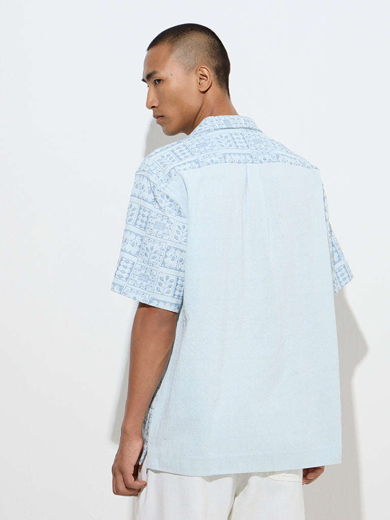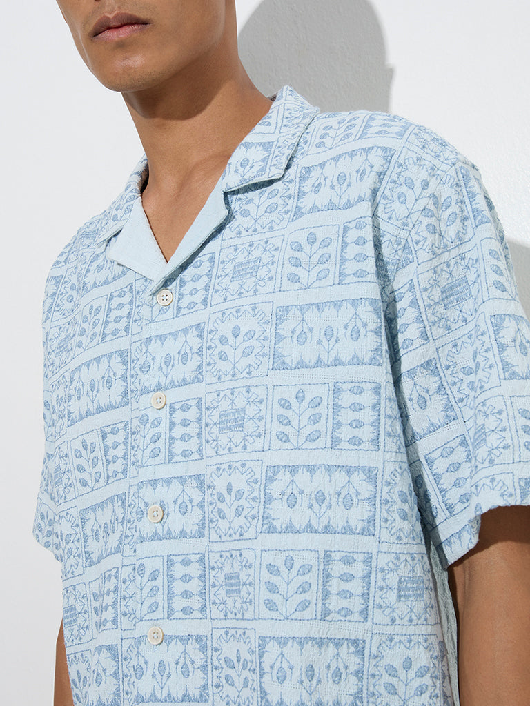 ETA Blue Embroidered Relaxed-Fit Cotton Shirt
