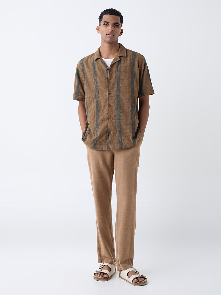 Be the first to review “ETA Brown Embroidered Relaxed-Fit Cotton Shirt”