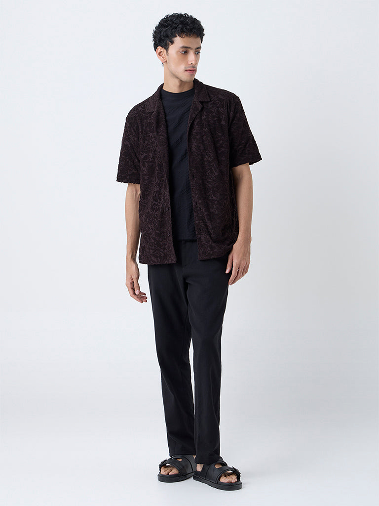 ETA Dark Brown Textured Relaxed-Fit Cotton-Blend Shirt
