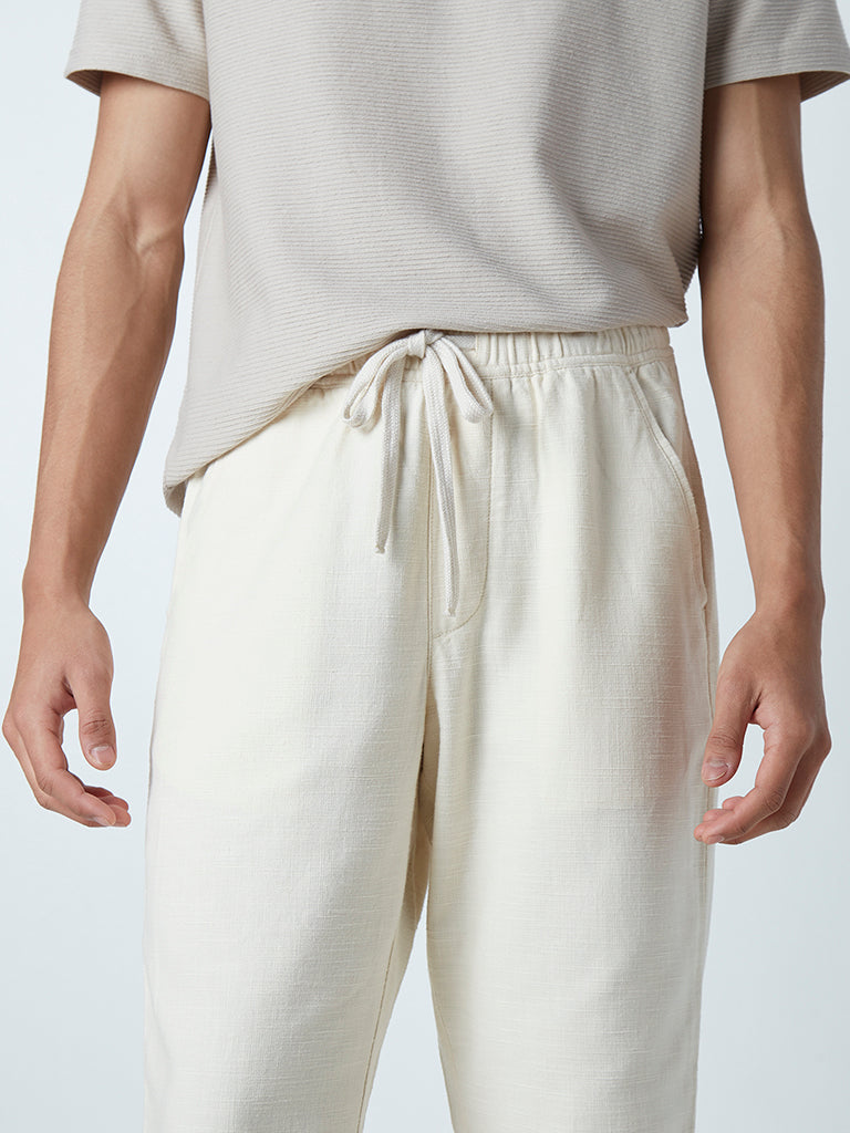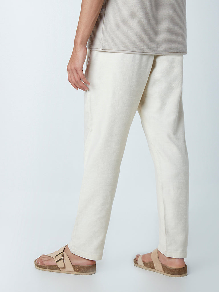 ETA Ecru Cotton Slim-Fit Mid-Rise Chinos
