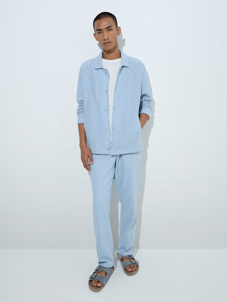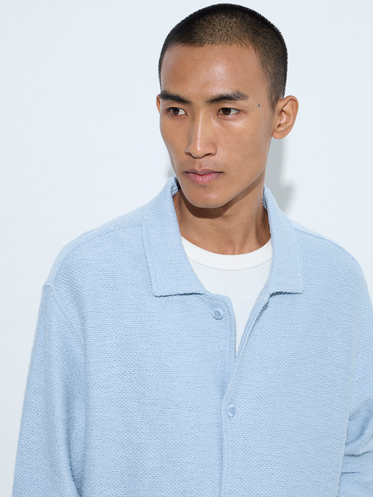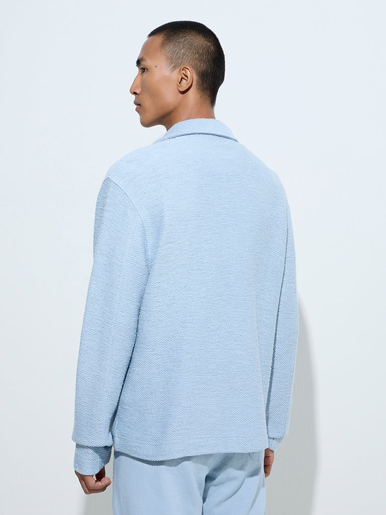 ETA Light Blue Knit-Textured Relaxed-Fit Cotton Jacket