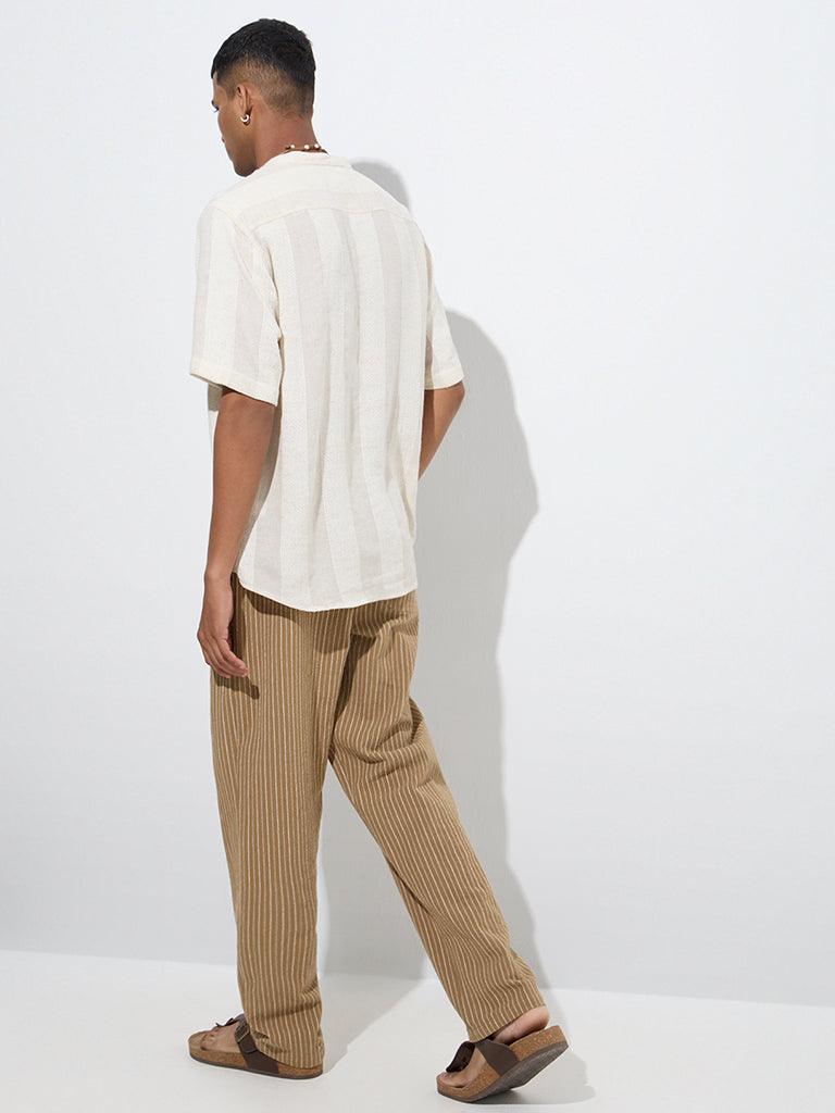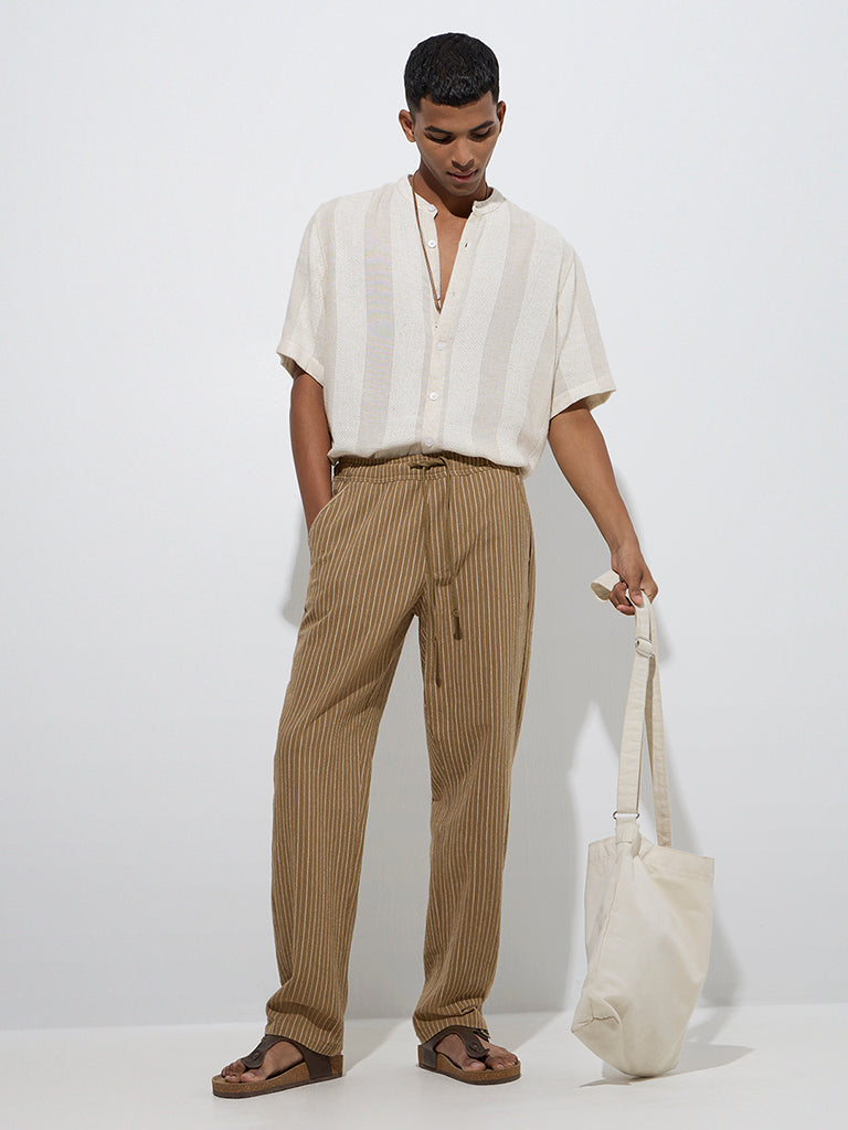Be the first to review “ETA Mustard Striped Relaxed-Fit Mid-Rise Cotton Chinos”