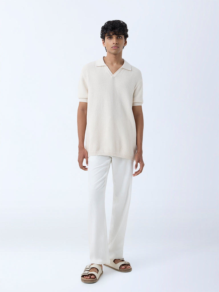 ETA Off-White Knitted Relaxed-Fit Polo T-Shirt